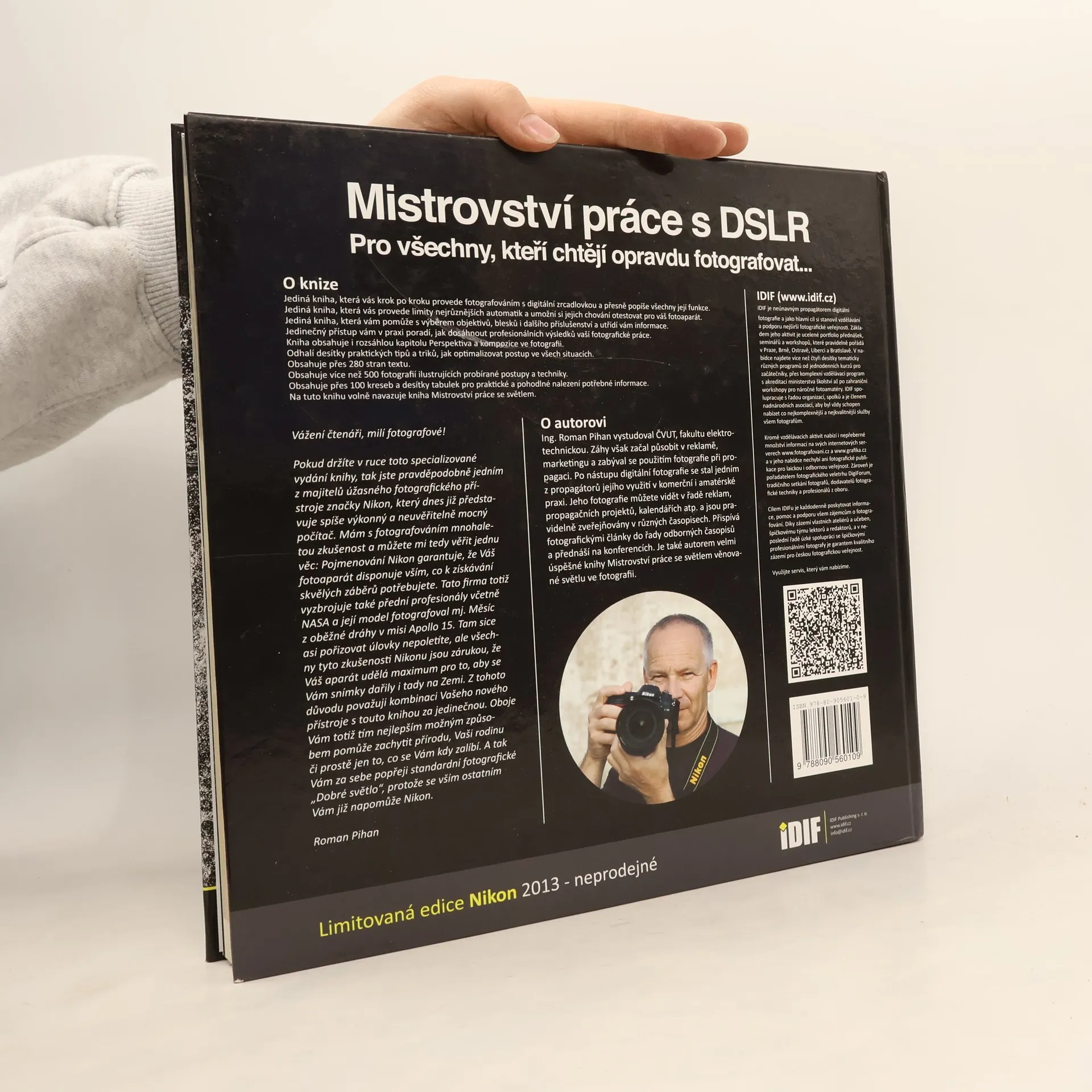 Institut digitální fotografie přichází s obsáhlou výpravnou publikací Mistrovství práce s DSLR. Kniha provede laika začátky práce s digitální zrcadlovkou, ale také uspokojí zkušeného praktika tohoto typu fotografování. Kolektiv autorů na knize pracoval mnoho měsíců. V jeho čele stál Roman Pihan, který se digitálním zrcadlovkám plně věnuje přes pět let. Mistrovství práce s DSRL obsahuje více než dvě stě stran odborného textu, přes čtyři sta fotografií, kresby, grafy a tabulky pro snadnější orientaci. Autoři se zaměřili na konkrétní problémy a přesné popisy všech funkcí digitálních fotoaparátů. Vychází z dotazů uživatelů DSLR a také se pokouší předvídat otázky, které by ještě mohly čtenáře napadnout. Poskytnou spolehlivého průvodce všemi fázemi výběru přístroje, od rozhodnutí pro určitý typ aparátu, až po pravidla nákupu. Rozeberou, jak si vybrat vhodné objektivy a další příslušenství, například blesk. Mistrovství práce s DSRL je nepostradatelnou příručkou v knihovně každého fotografa.