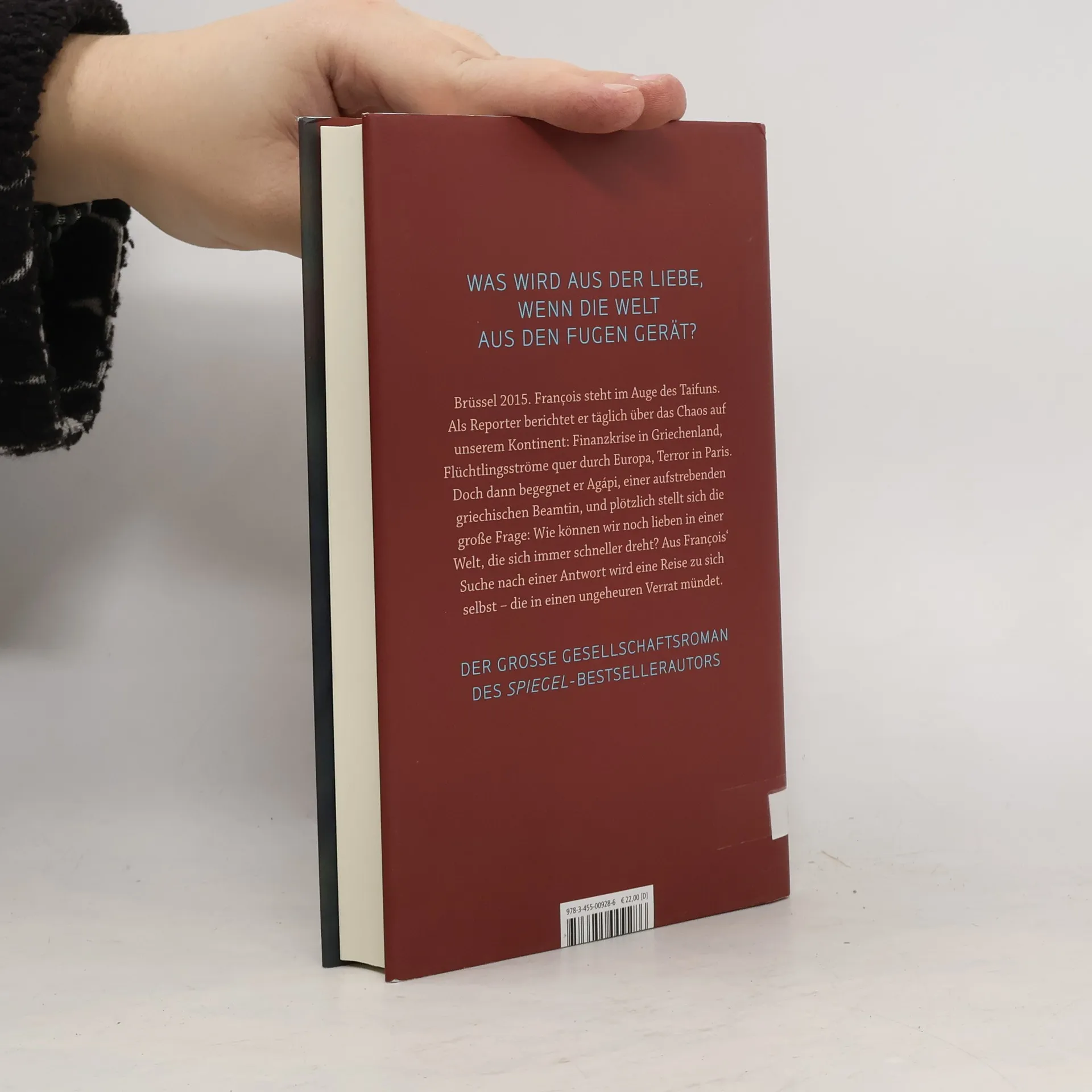 Brüssel im Jahr 2015: François, Mitte Dreißig, steht im Auge des Taifuns. Als Freelancer für deutsche und französische Nachrichtensender jettet er rastlos durch Europa, auf der Jagd nach der nächsten Nachricht und dem nächsten großen Thema. Die Welt um ihn herum scheint sich immer schneller zu drehen: Finanzkrise in Griechenland, Flüchtlingsströme quer durch Europa, Terror im Pariser Bataclan. Bis François in der europäischen Hauptstadt auf einer Pressekonferenz Agapì begegnet, einer aufstrebenden Beamtin aus dem Stab des griechischen Finanzministers. Plötzlich steht eine große Frage im Raum: Wie können wir noch lieben, wenn die Welt aus den Fugen gerät? François‘ Suche nach einer Antwort gerät zu einer Reise zu sich selbst – und mündet in einen ungeheuren Verrat.