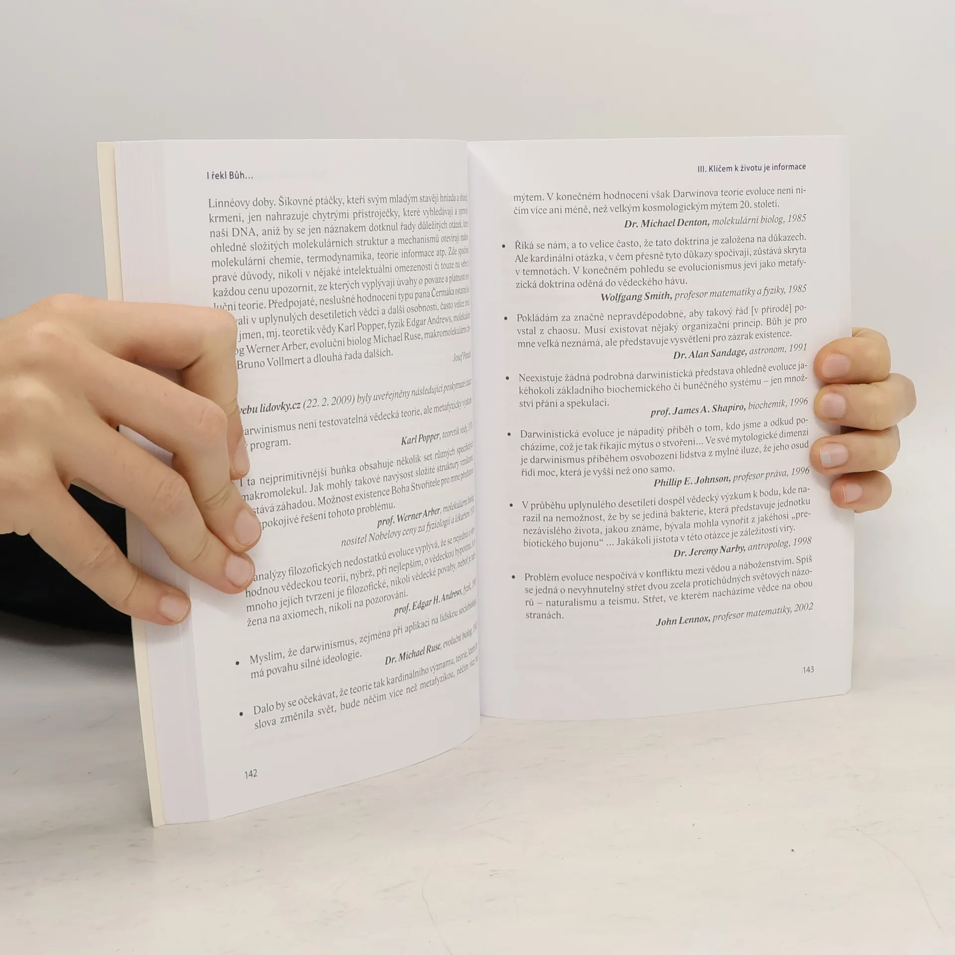 Když Darwin roku 1859 vydal svou knihu O vzniku druhů, byla jeho teorie pociťována jako zásadní změna pohledu na svět. Evolucí se rozumí neřízený vývojový proces, kde si příroda vystačí sama; biblický princip stvoření s jeho transcendentním přesahem byl odmítnut jako překonaný: „Darwin ve své knize zpochybnil všechno, čemu lidé věřili o lidské duši, o Bohu nebo o smyslu života.“ Prvním otřesem pro toto sebevědomí bylo objevení genetického kódu a molekulárního základu života o sto let později. Reakcí byl vznik neodarwinistické syntézy, předstírající, že to pro naturalistický výklad života neznamená žádný problém. Dnes se ale ukazuje, že je to podobné, jako psát historii katedrál s vyloučením architektů - nelze se tak dobrat pravdy. Pokračující výzkum o informačním základu života a o složitosti mikrosvěta buňky evoluční ortodoxii dále zpochybnil a vyústil do vzniku teorie inteligentního plánu, jako diametrálně odlišného přístupu k živému světu. Znovu tak dochází k tomu, že věda někdy musí zcela změnit způsob svého pohledu na svět, podobně jako v případech spojených se jmény Kepler, Newton, Pasteur, Einstein či Planck. Nyní je na řadě biologie.