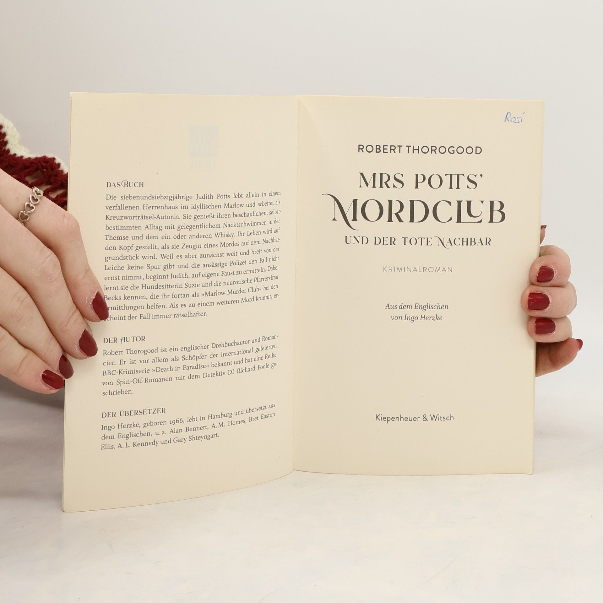 Judith Potts hat ein Hobby und wir eine neue Krimireihe: willkommen im Mordclub! Simply wonderful: Der gute alte englische Krimi ist zurück! Als die leicht exzentrische Judith Potts mitbekommt, dass ihr Nachbar ermordet wird und die Polizei ihr das nicht glaubt, nimmt sie die Sache resolut selbst in die Hand. Die siebenundsiebzigjährige Judith Potts lebt allein in einem verfallenen Herrenhaus im idyllischen Marlow und arbeitet als Kreuzworträtsel-Autorin für eine Zeitung. Sie genießt ihren beschaulichen, selbstbestimmten Alltag mit gelegentlichem Nacktschwimmen in der Themse und dem ein oder anderen Whisky. Ihr Leben wird auf den Kopf gestellt, als sie Zeugin eines Mordes auf dem Nachbargrundstück wird. Weil es weit und breit von der Leiche keine Spur gibt und die ansässige Polizei den Fall nicht ernst nimmt, beginnt Judith, auf eigene Faust zu ermitteln. Dabei lernt sie die Hundesitterin Suzie und die neurotische Pfarrersfrau Becks kennen, die ihr fortan als »Marlow Murder Club« bei den Ermittlungen helfen. Als es zu einem weiteren Mord kommt, erscheint der Fall immer rätselhafter …
