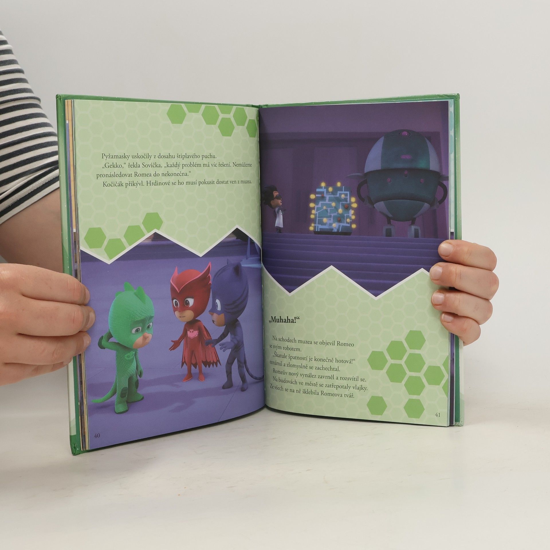 Seznamte se se Sovičkou, Kočičákem a Gekkem, statečnými malými superhrdiny, kteří ve dne chodí do školy jako všechny ostatní děti a v noci s pomocí důvtipu a superschopností bojují se zločinem. Pyžamasky vyrážejí do akce! Přečtěte si o tom, jak Pyžamasky vyzrály na lstivého nočního nindžu a jak si poradily s padouchem, který obsadil muzeum, aby mohl dokončit svůj strašlivý vynález.