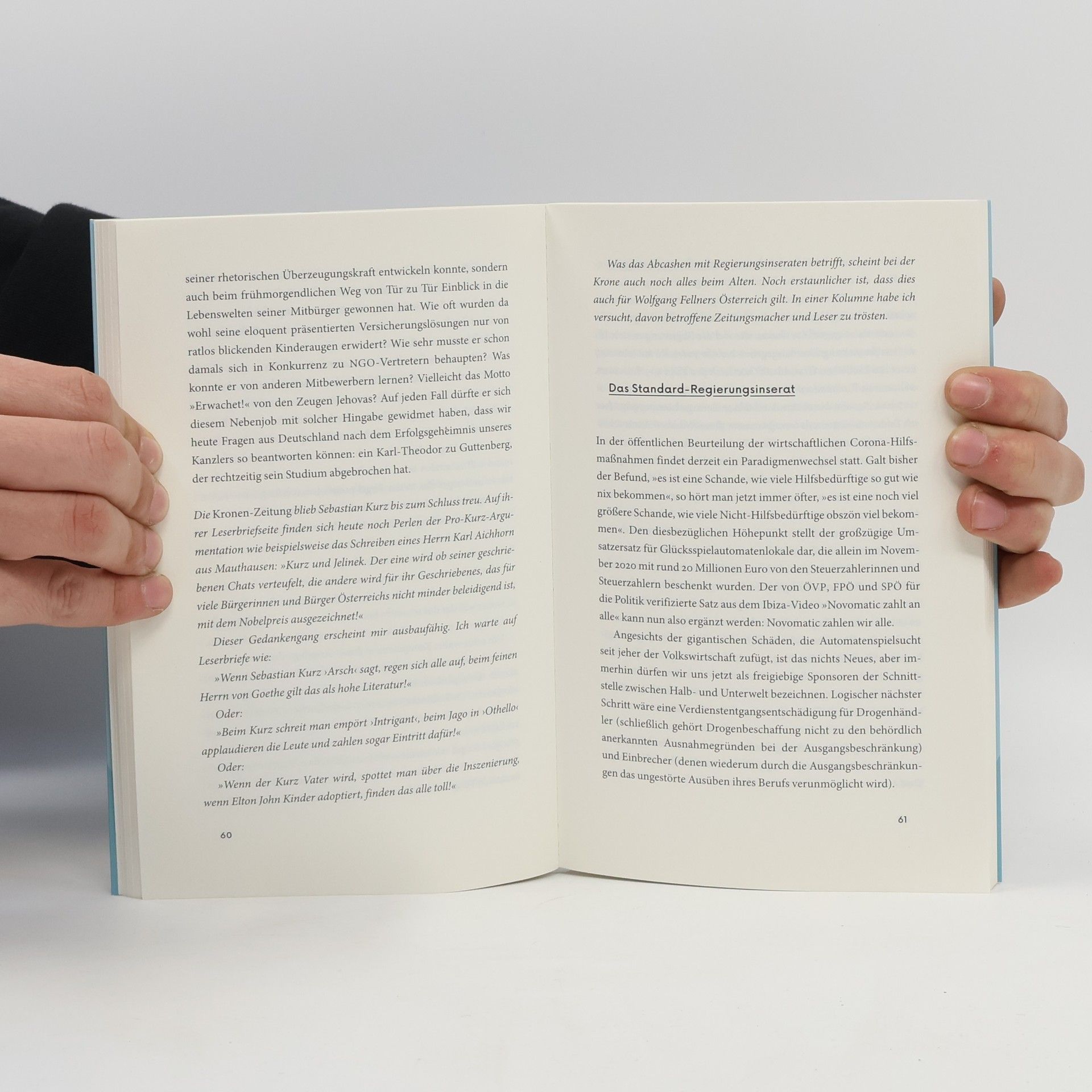 „Noch komischer als in der österreichischen Polit-Realität von Bussi-Chats und Liebesschwüren wird es nur, wenn Florian Scheuba sich einmischt. Lesen, lachen, lernen!“ Bastian Obermayer, Frederik Obermaier (Süddeutsche Zeitung) Hunderttausende Chat-Nachrichten auf einem Mobiltelefon aus dem nächsten Umfeld des mittlerweile zurückgetretenen österreichischen Bundeskanzlers Sebastian Kurz erschütterten im Herbst 2021 die Republik. Sie lösten ein politisches Erdbeben aus, das noch stärker nachwirkt als das berüchtigte „Ibiza“-Video. Gekaufte Medien, perfide Intrigen, schamloser Postenschacher und Korruption verschiedener Ausprägung treten darin zutage. Es ist ein Lügengebäude, das seinen zuvor stets auf Message Control bedachten Erbauern nun um die Ohren fliegt. Der investigative Kabarettist Florian Scheuba hat sich auf eine so spannende wie satirische Spurensuche begeben. Was er dabei fand, ist ein von Nebelgranaten verdunkeltes Trümmerfeld, das so manche Überraschung aus dem Innenleben der türkisen Parteifamilie bereithält.