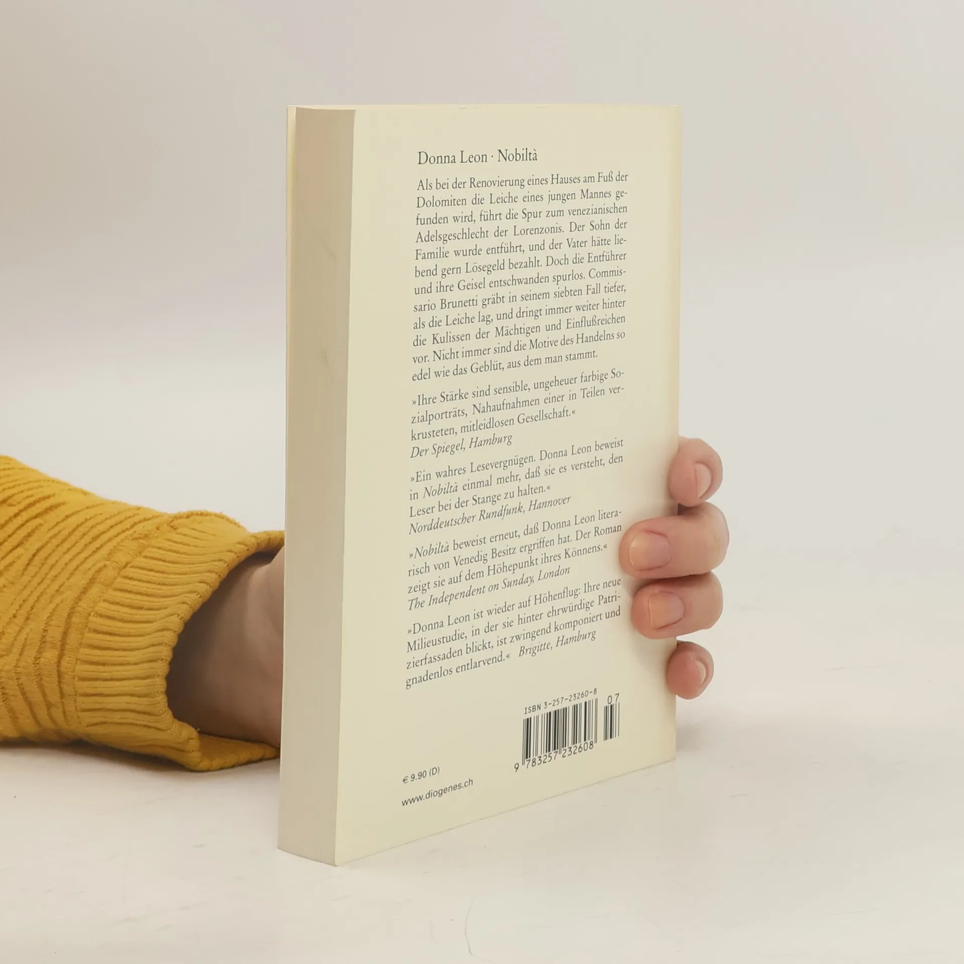 Als bei der Renovierung eines Hauses am Fuß der Dolomiten die Leiche eines jungen Mannes gefunden wird, führt die Spur zum venezianischen Adelsgeschlecht der Lorenzonis und weiter hinter die Kulissen der Mächtigen und Einflußreichen. Commissario Brunetti gräbt in seinem siebten Fall tiefer, als die Leiche lag. Nicht immer sind die Motive des Handelns so edel wie das Geblüt, aus dem man stammt. "