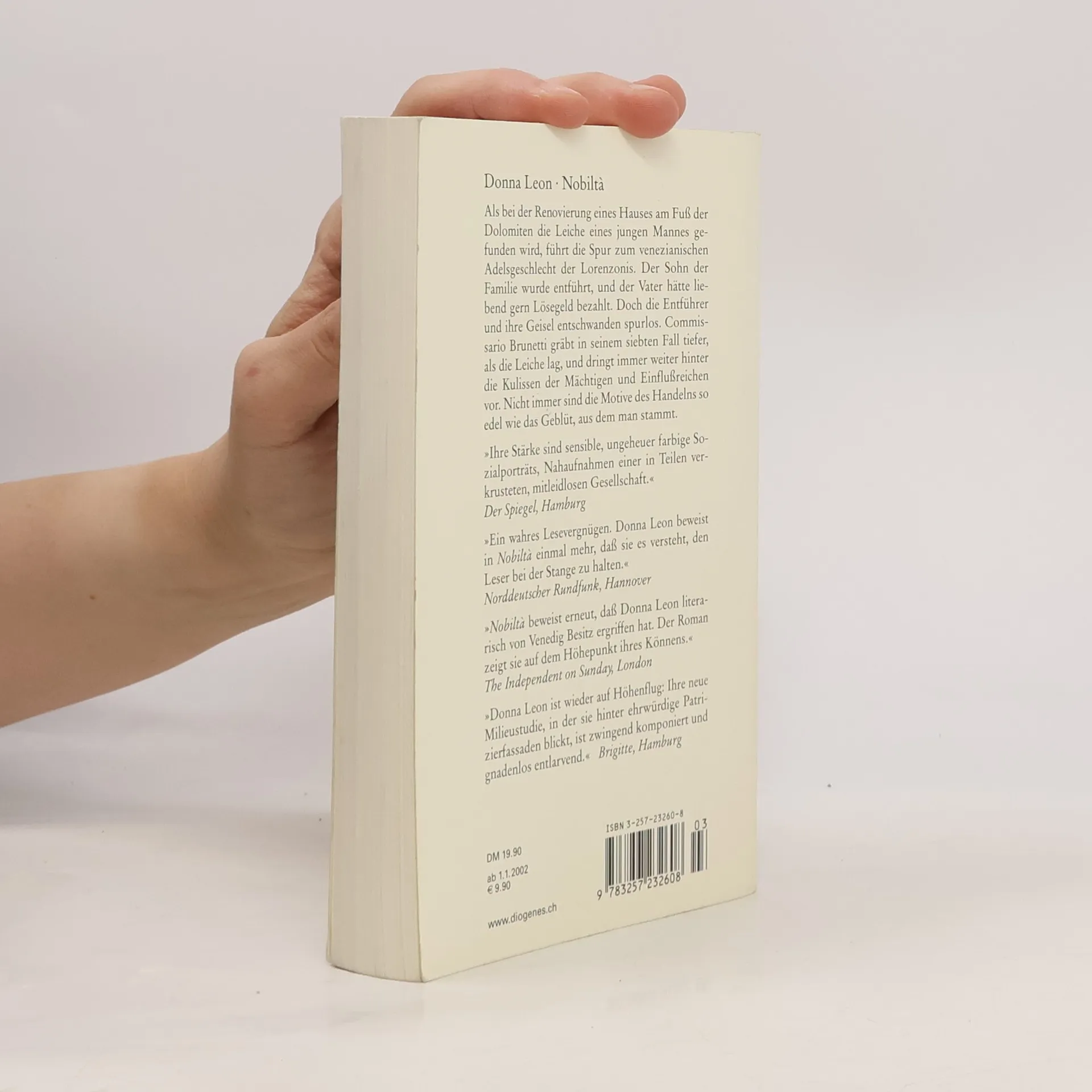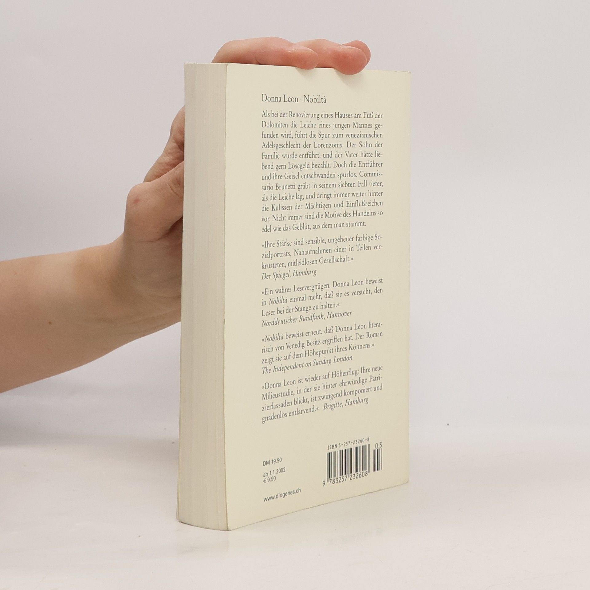 Als bei der Renovierung eines Hauses am Fuß der Dolomiten die Leiche eines jungen Mannes gefunden wird, führt die Spur zum venezianischen Adelsgeschlecht der Lorenzonis und weiter hinter die Kulissen der Mächtigen und Einflußreichen. Commissario Brunetti gräbt in seinem siebten Fall tiefer, als die Leiche lag. Nicht immer sind die Motive des Handelns so edel wie das Geblüt, aus dem man stammt. "
