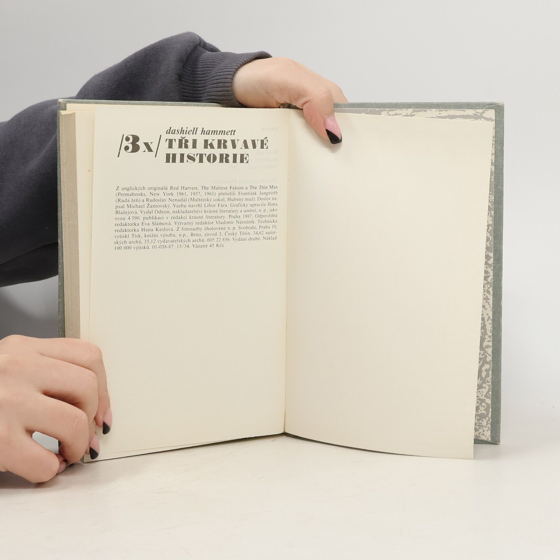 Kniha obsahuje tři případy : 1. Rudá žeň - přeložil František Jungwirth. 2. Maltézský sokol - přeložil Radoslav Nenadál. 3. Hubený muž - přeložil Radoslav Nenadál. Doslov „Záhada jménem Hammett“ napsal Michael Žantovský. Vydání druhé.