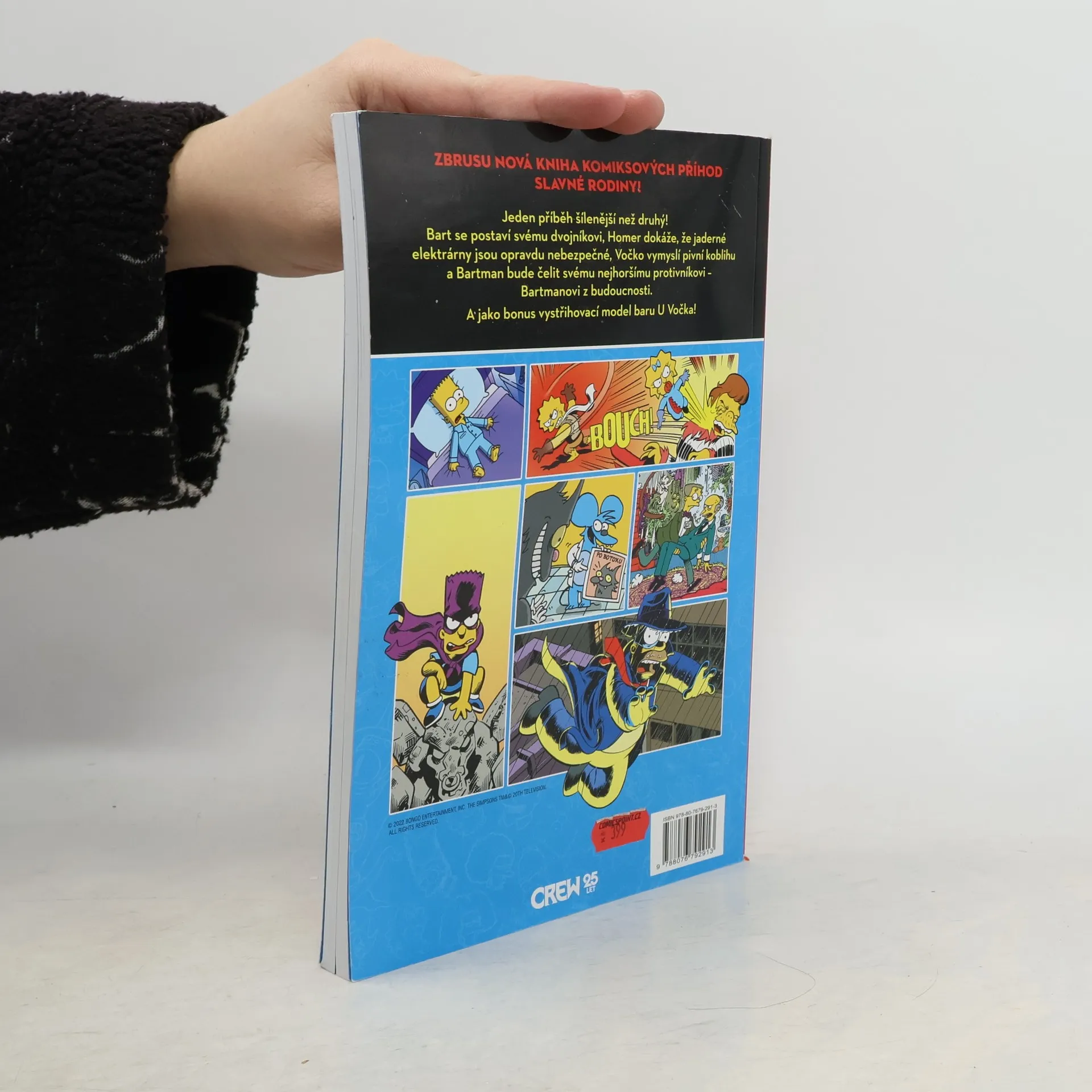 V další knize plné zábavy čekají Barta potíže s rozdvojením osobnosti (fakticky), Homer zjistí, že poplach v jaderné elektrárně je důvodem k panice, Vočko se štamgasty vynalezne oblíbené pivní koblihy, celá rodinka se bude činit jako včeličky při výrobě medu a Bartman se setká se svým zatím nejmocnějším protivníkem… Bartmanem z budoucnosti! No a nakonec si vlastníma rukama postavíte vlastní Vočkovu hospodu!