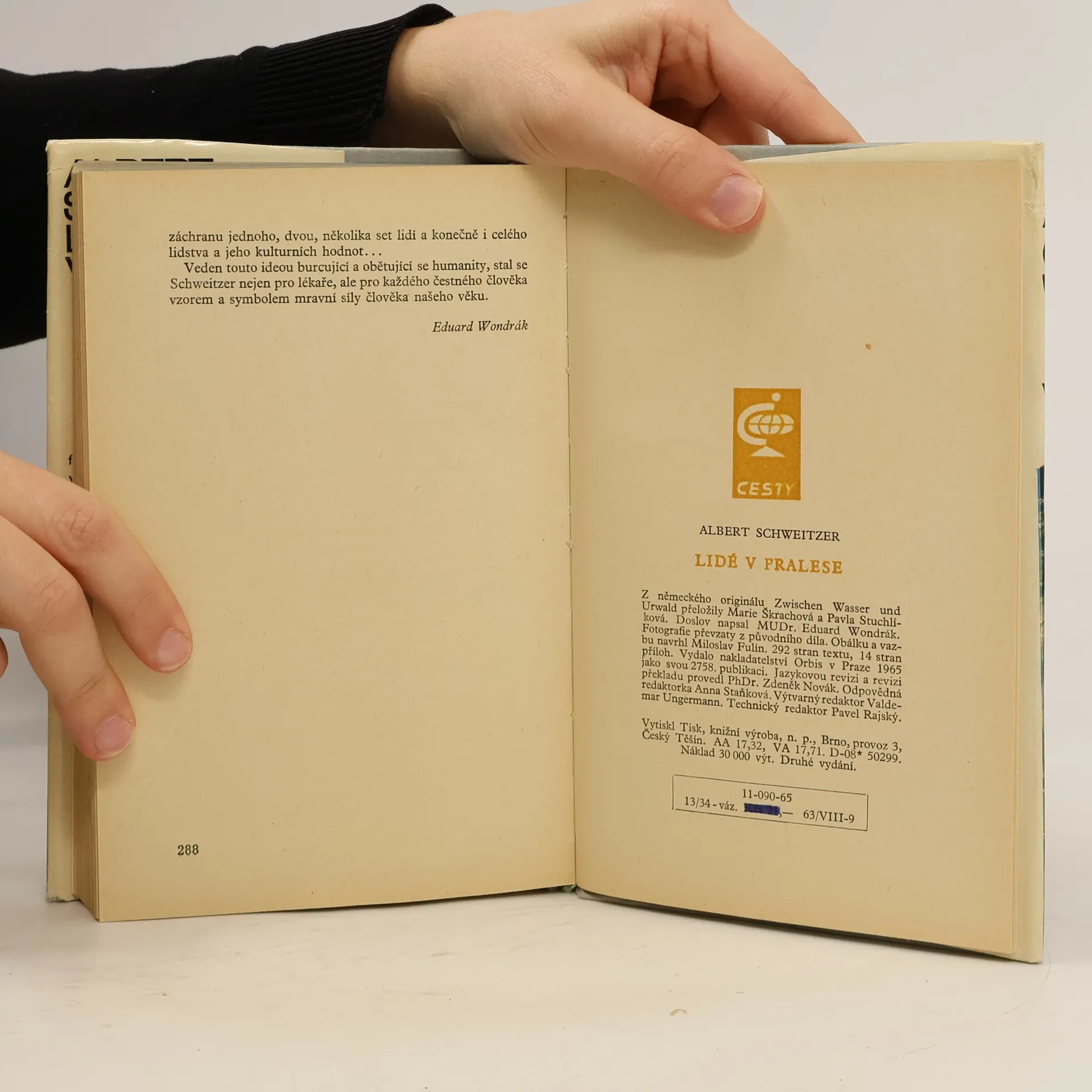 Kniha obsahuje zápisky z působení A. Schwaitzera v Africe v Lambaréné. Rozděleny jsou do dvou částí: Lidé v pralese (1913–1918) a Zprávy z Lambaréné (1924–1927). Hovoří o úžasné obětavosti, trpělivosti a soucitu lékaře, který pracuje za nejtěžších podmínek. Většinu finančníchprostředků získává svými knížkami, přednáškami a koncerty, s nimiž odjíždí do Evropy i do Ameriky. Doslov: Eduard Wondrák