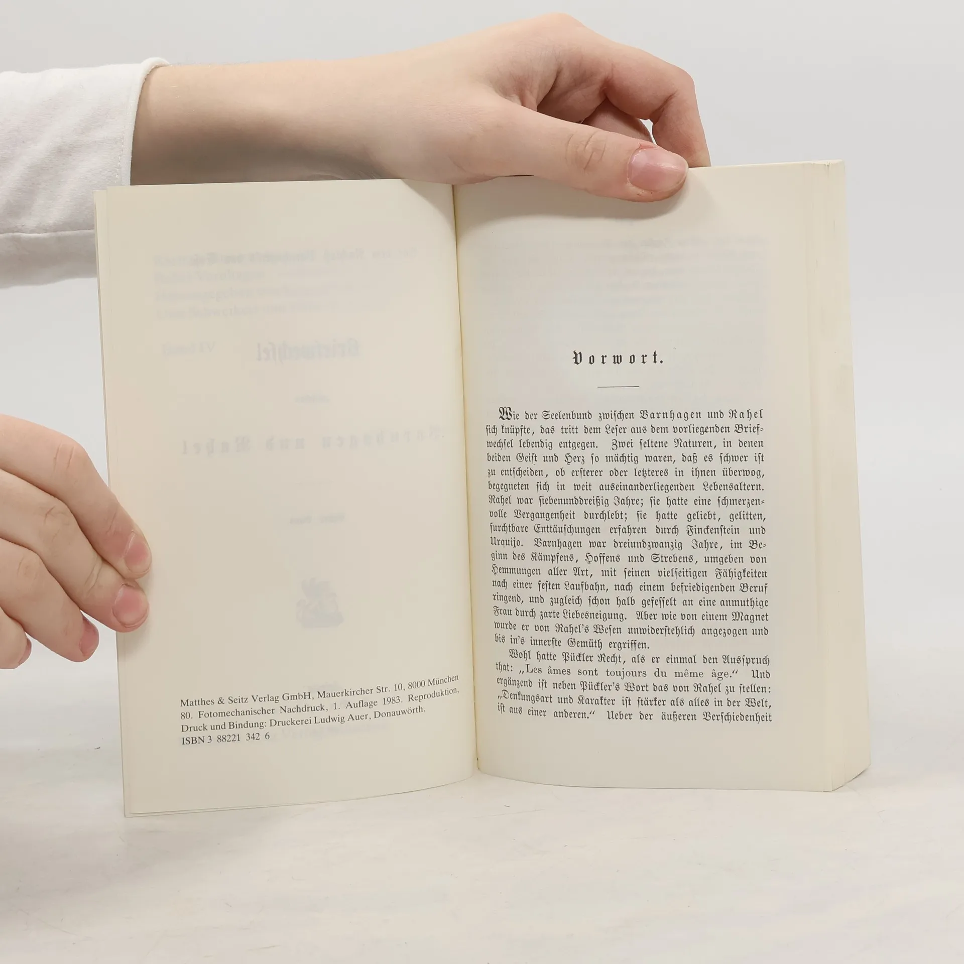 Varnhagen, Rahel, 1771-1833 Selections from the author's correspondence, diaries, etc. Oorspr, uitgave: 1834-1877. Deel 1-3. Rahel : ein Buch des Andenkens fu¨r ihre Freunde; Deel 4-6. Briefwechsel zwischen Varnhagen und Rahel : aus dem Nachlass Varnhagen's von Ense; Deel 7. Briefwechsel zwischen Rahel und David Veit : aus dem Nachlass Varnhagen's von Ense; Deel 8. Aus Rahel's Herzensleben : Briefe und Tagebuchbla¨tter. Augelus Silesius und Saint-Martin; Deel 9. Briefe und Tagebu¨cher aus verstreute Quellen; Deel 10. Studien, Materialien, Register