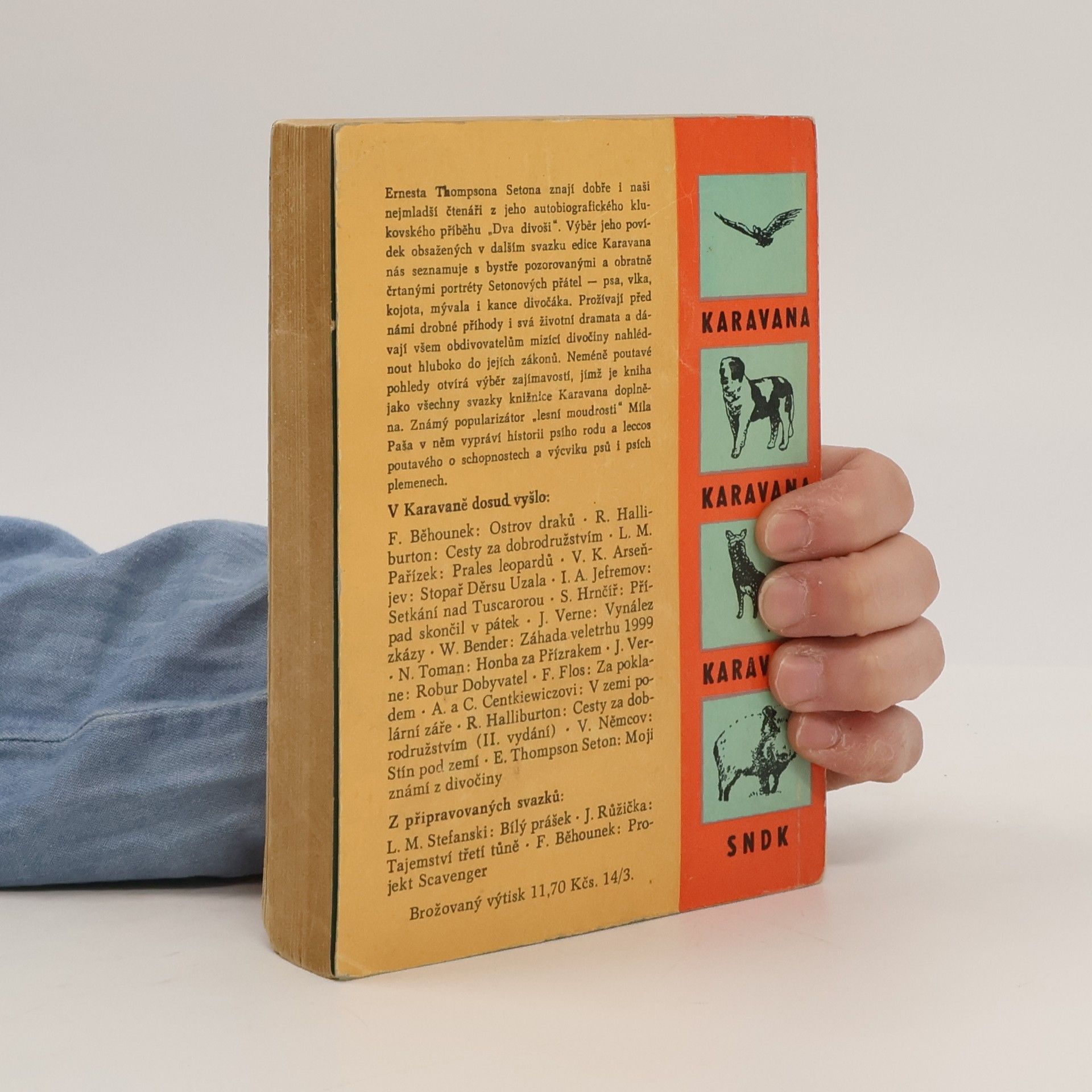 Osm povídek vybraných z díla známého kanadského spisovatele. V tomto svazku jsou obsaženy příběhy psa, vlka, kojota, kance divočáka a mývala. Navíc je k nim připojeno vylíčení historie psa a jeho rodu s četnými zajímavostmi o charakteru, schopnostech a výcviku tohoto nejvěrnějšího přítele člověka.