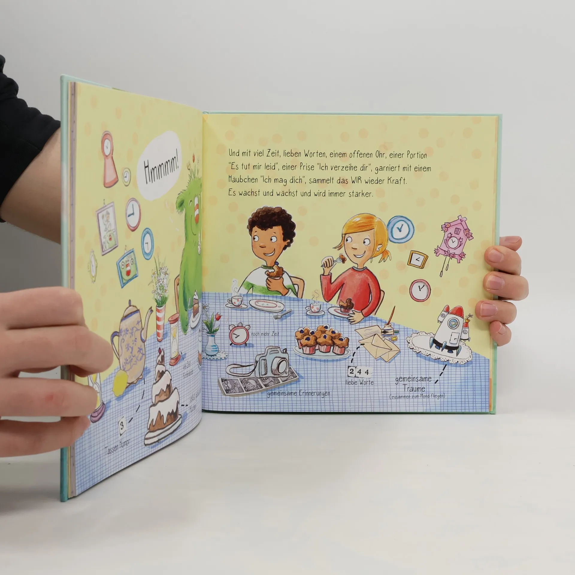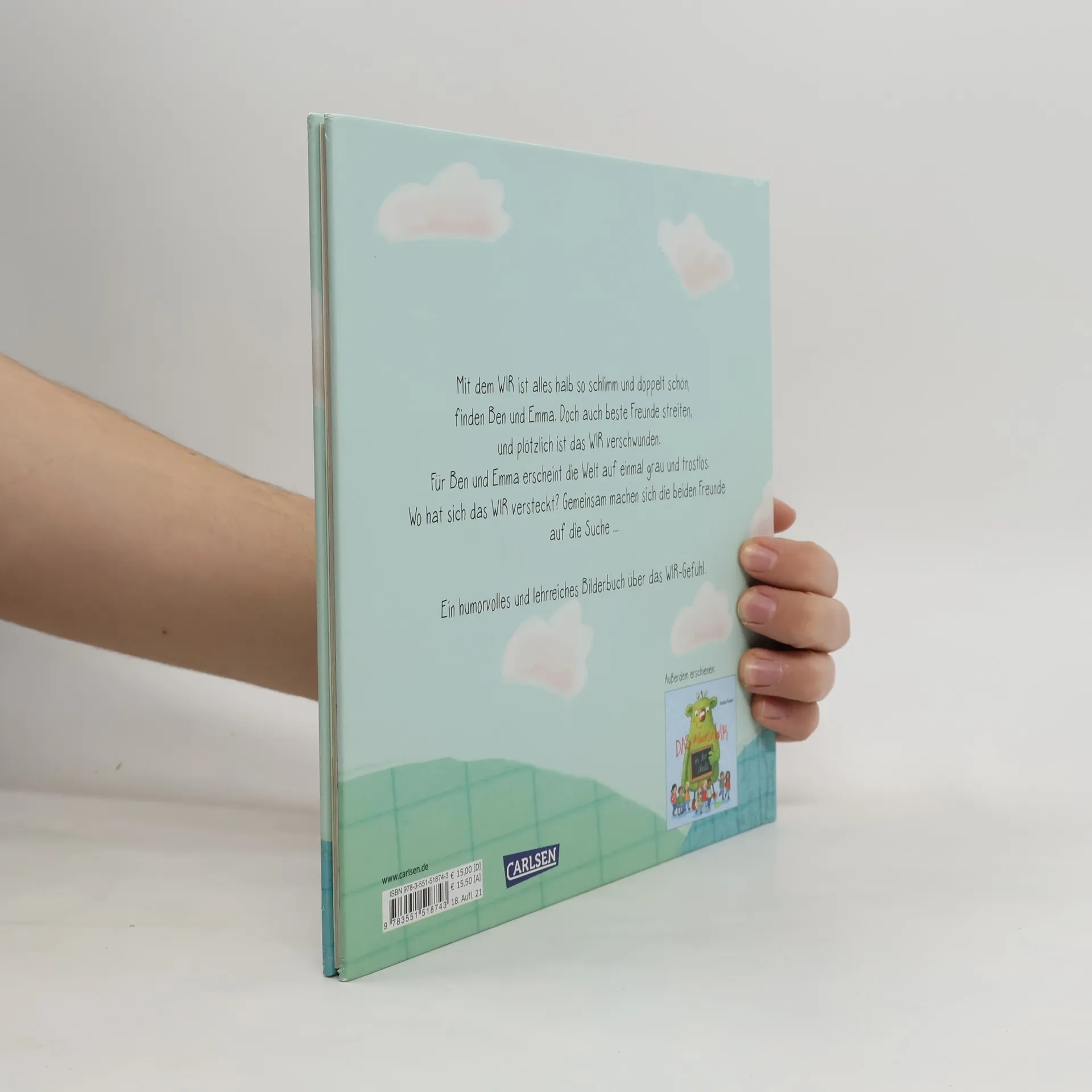 Ein humorvolles, lehrreiches Bilderbuch über das WIR-Gefühl Das WIR-Gefühl ist für Kinder und Erwachsene sehr wichtig. Aber wie können wir Kindern das WIR-Gefühl anschaulich erklären? Klar: Mit der Geschichte vom kleinen WIR! Emma und Ben sind allerbeste Freund*innen. Sie verstehen sich super und machen alles zusammen. Aber eines Tages geht den beiden ihr WIR-Gefühl verloren ... Streit gehört zum Kinderalltag. Emma und Ben haben sich nämlich ganz sehr gestritten und viel zu oft „ICH!“ gesagt! Ihr WIR ist sehr scheu und hat sich deswegen gut versteckt. Emma und Ben vermissen ihr WIR, denn ohne ihr WIR macht gar nichts Spaß. Alles fühlt sich grau und freudlos an.   Und so machen sie sich auf die Suche nach dem WIR. Wo steckt es bloß? Wie Emma und Ben ihr WIR wiederfinden und wo es sich versteckt hat, davon erzählt dieses Bilderbuch.  Stärkt das WIR-Gefühl Hilft Kindern, sich in andere einzufühlen Erklärt anschaulich, warum wir uns streiten und wie wir uns wieder vertragen können Zum Vorlesen, Anschauen und Entdecken für alle ab 3 Jahren Ideal für zu Hause und für Pädagog*innen geeignet                                                                 ****