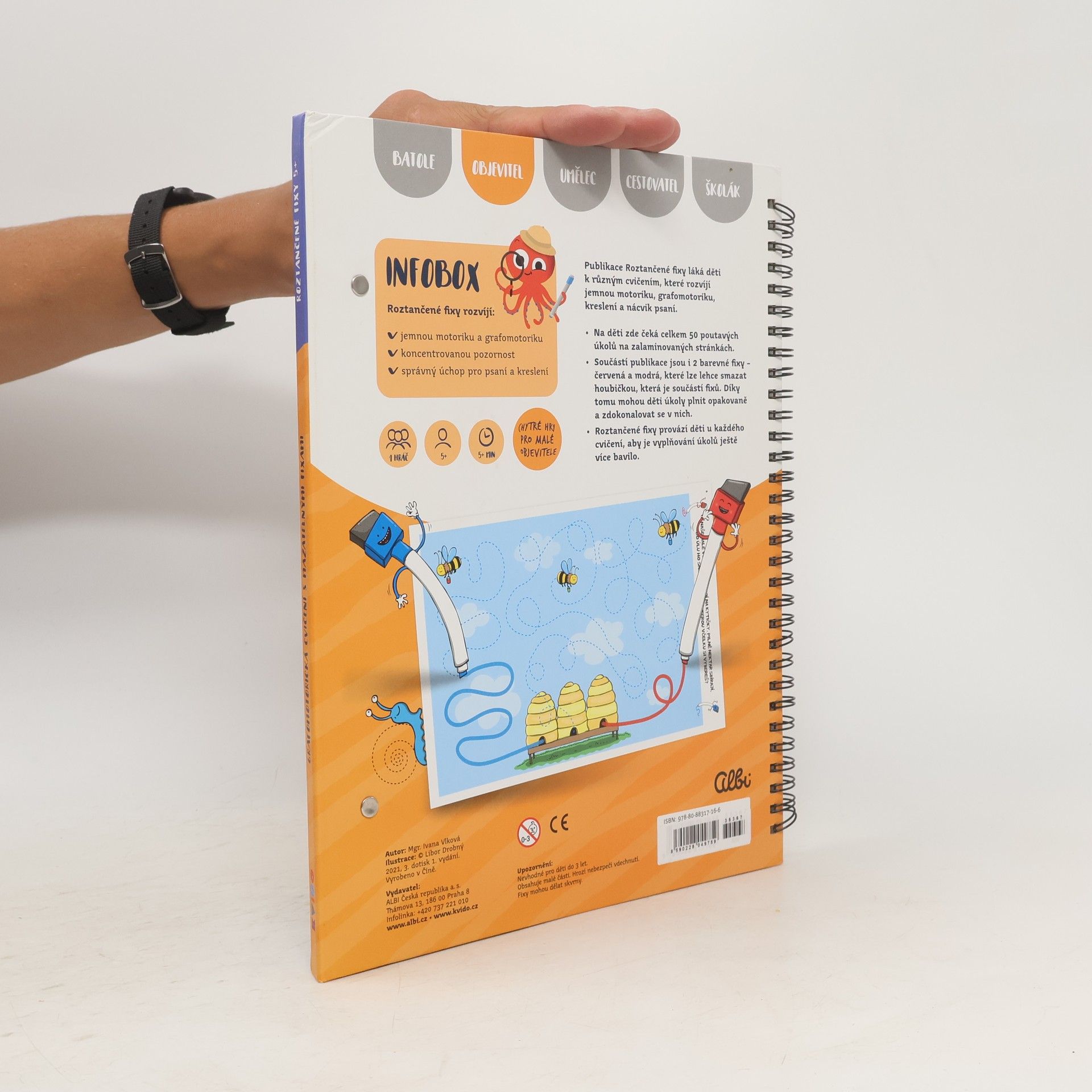 Roztančené fixy jsou interaktivní grafomotorické sešity plné obrázků a aktivit s příběhy 2 barevných fixek, které učí Kvída a předškolní děti kreslit a psát a rozvíjet přitom jemnou motoriku a zrakové vnímání. Díky mazatelným fixům můžou děti sešity vyplňovat opakovaně a procvičovat si tak úkoly znovu a znovu. Každý sešit Roztančené fixy má 50 stran plných úkolů pro děti předškolního věku. Kroužková vazba a zavírání na magnet je vhodné i do batůžku na cesty. Nově obsahují fixy všech vydání gumové delfínky, které napomáhají správnému úchopu.