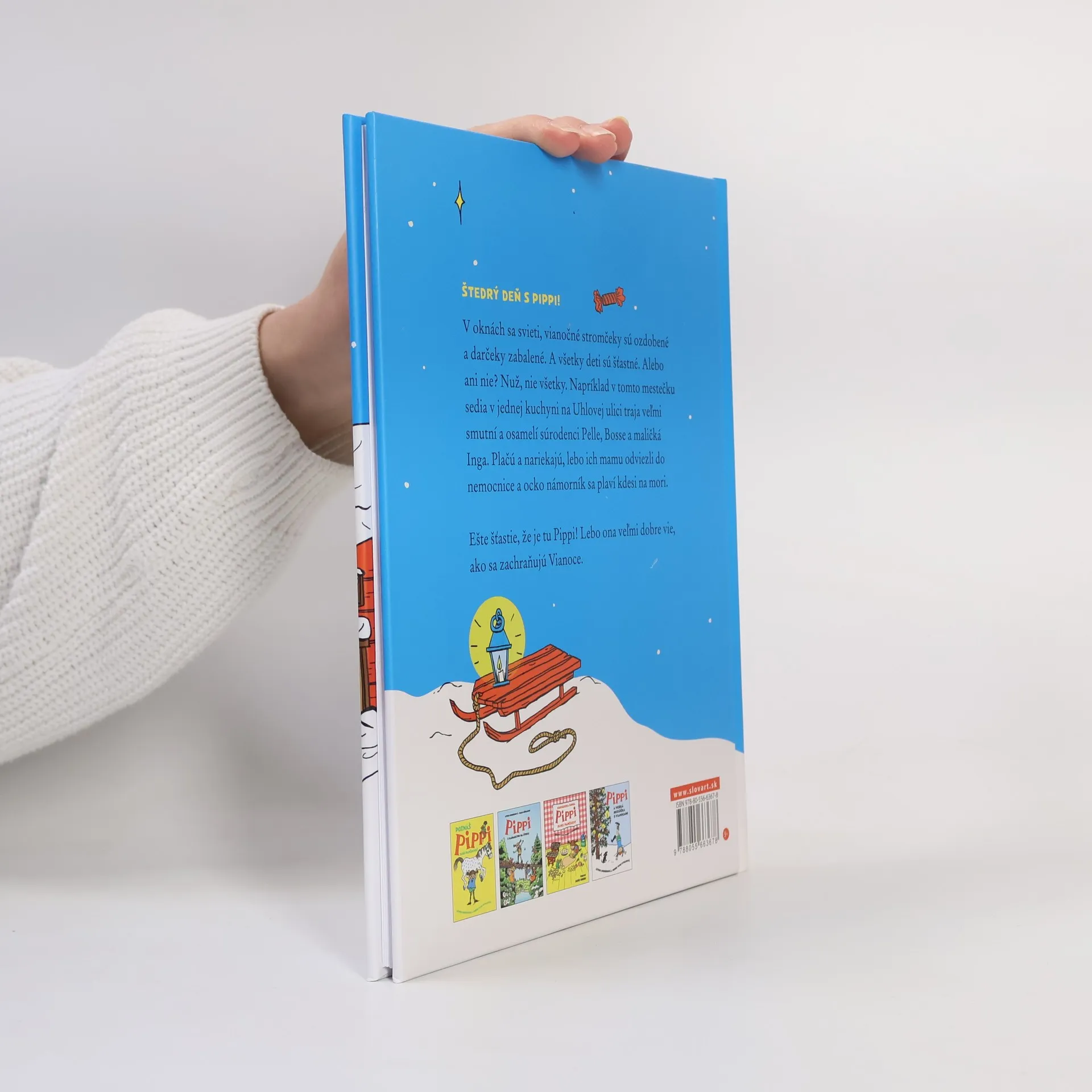 Počuli ste už o Pippi Dlhej pančuche, o najsilnejšom dievčatku na svete? O tej Pippi, ktorá býva úplne sama vo vile Vilôčke iba so svojím koníkom a opicou? O tej Pippi, ktorá má cestovnú kapsu plnú zlatiek?Tak tá Pippi tentoraz zachraňuje Vianoce!V oknách sa svieti, vianočné stromčeky sú ozdobené a darčeky zabalené. A všetky deti sú šťastné. Alebo nie? V jednej kuchyni na Uhlovej ulici sedia traja veľmi smutní a osamelí súrodenci Pelle, Bosse a maličká Inga. Plačú a nariekajú, lebo ich mamu odviezli do nemocnice a ocko námorník sa plaví kdesi na mori. Ešte šťastie, že je tam Pippi, lebo ona presne vie, ako spraviť pekné Vianoce.Tento text prvý raz vyšiel pod názvom Pippi oslavuje Vianoce v časopise Julbocken v roku 1949. Znova ho objavili v archíve Kráľovskej knižnice roku 2002. Teraz príbeh vyšiel prvý raz ako obrázková kniha s ilustráciami inšpirovanými ilustráciami Ingrid Vang Nymanovej.