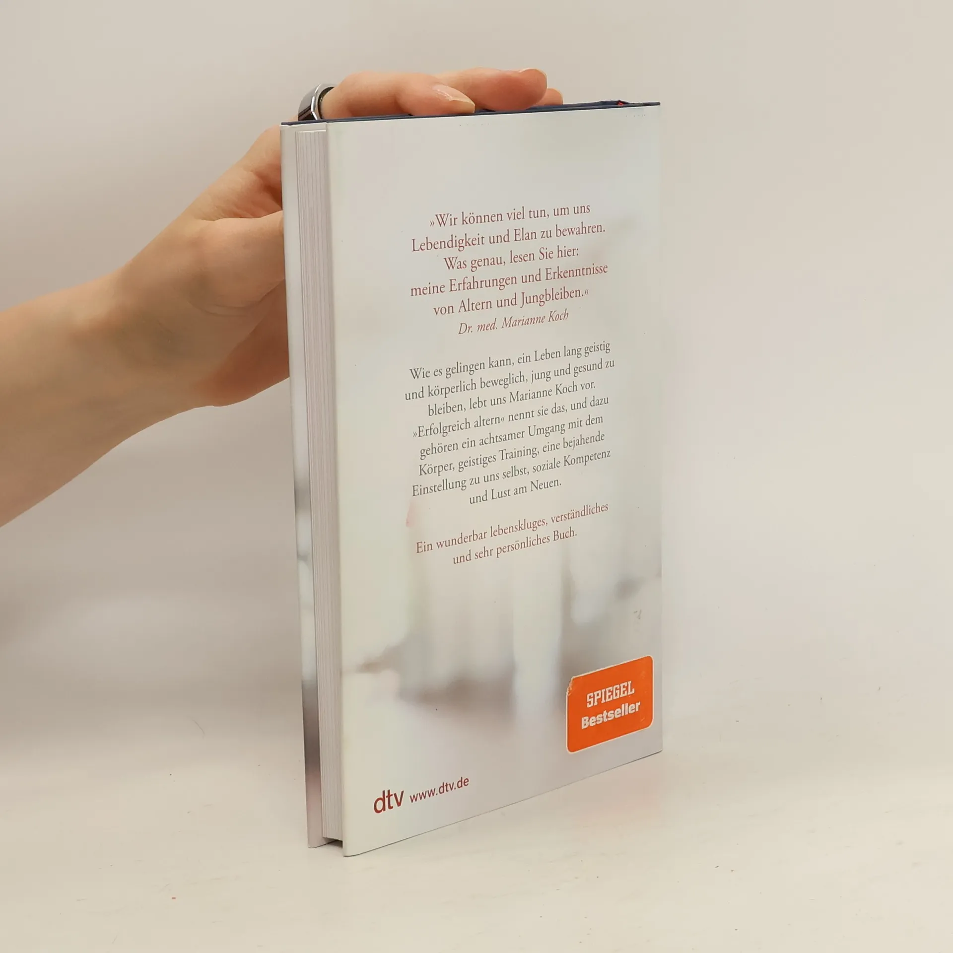 »Älter werden wir alle, auf das Wie kommt es an.« Wie es gelingt, geistig jung, gesund und voller Elan zu bleiben, lebt uns Dr. med. Marianne Koch vor. »Erfolgreich altern« nennt sie das, und was alles dazugehört, erzählt sie hier. In neun Kapiteln beleuchtet Marianne Koch physiologische wie psychische Aspekte, die das Altern mit sich bringt. Sie geht auf das Selbstbewusstsein ein, auf Ernährung und Bewegung, auf lebenslanges Lernen, das Problem der Einsamkeit, den Umgang mit Verlusten und zeigt, wie wichtig es ist, die Lust am Neuen nicht zu verlieren. Am Ende steht die Frage: Wer bin ich heute – und wer möchte ich morgen sein? Immer wieder schöpft Marianne Koch aus ihren eigenen Erfahrungen, sie erzählt, gibt Rat und wertvolle Empfehlungen.