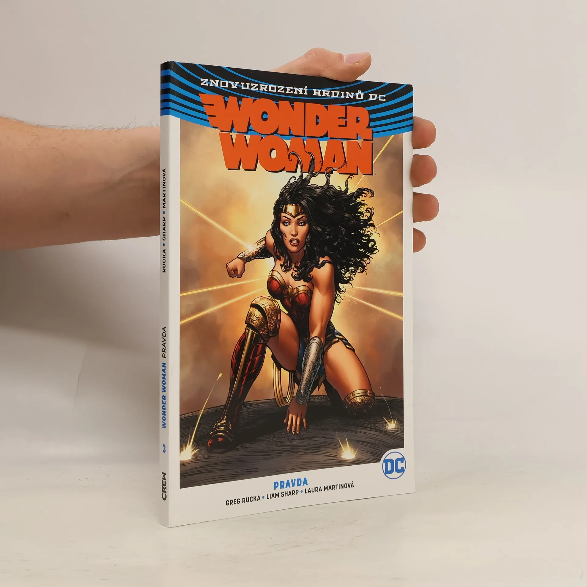 BOŽSKÉ ŠÍLENSTVÍ Říká se, že pravda vás osvobodí. V to Diana, hrdinka známá světu jako Wonder Woman, doufala. Ale odhalila daleko temnější pravdu a zjistila, že celý její život a minulost byly změněny... A to ji přivedlo k šílenství. Zatímco se její život rozplétá, zlověstné síly ohrožují vše, co je jí drahé. Bez ohledu na rozsah svého traumatu musí pokračovat v boji proti zlu a lžím, které jí zničily život. S pomocí nejbližších spojenců - i své nemesis Cheetah - Diana znovu složí střípky rozbité mysli a pustí se do bitvy proti děsivým novým protivníkům. Vzepře se vůli bohů, zachrání své sestry z Themysciry a vyřeší záhadu své vlastní existence jednou provždy? Nebo je cena za pravdu tak nezměrná, že ji neunese ani Wonder Woman? To zjistíte v komiksu Wonder Woman, kniha třetí: Pravda, poslední kapitole populární ságy scenáristy Grega Rucky a kreslíře Liama Sharpa. Tento příběh k vám přichází přímo ze senzačního Znovuzrození hrdinů DC. Obsahuje liché sešity série Wonder Woman č. 13-25.