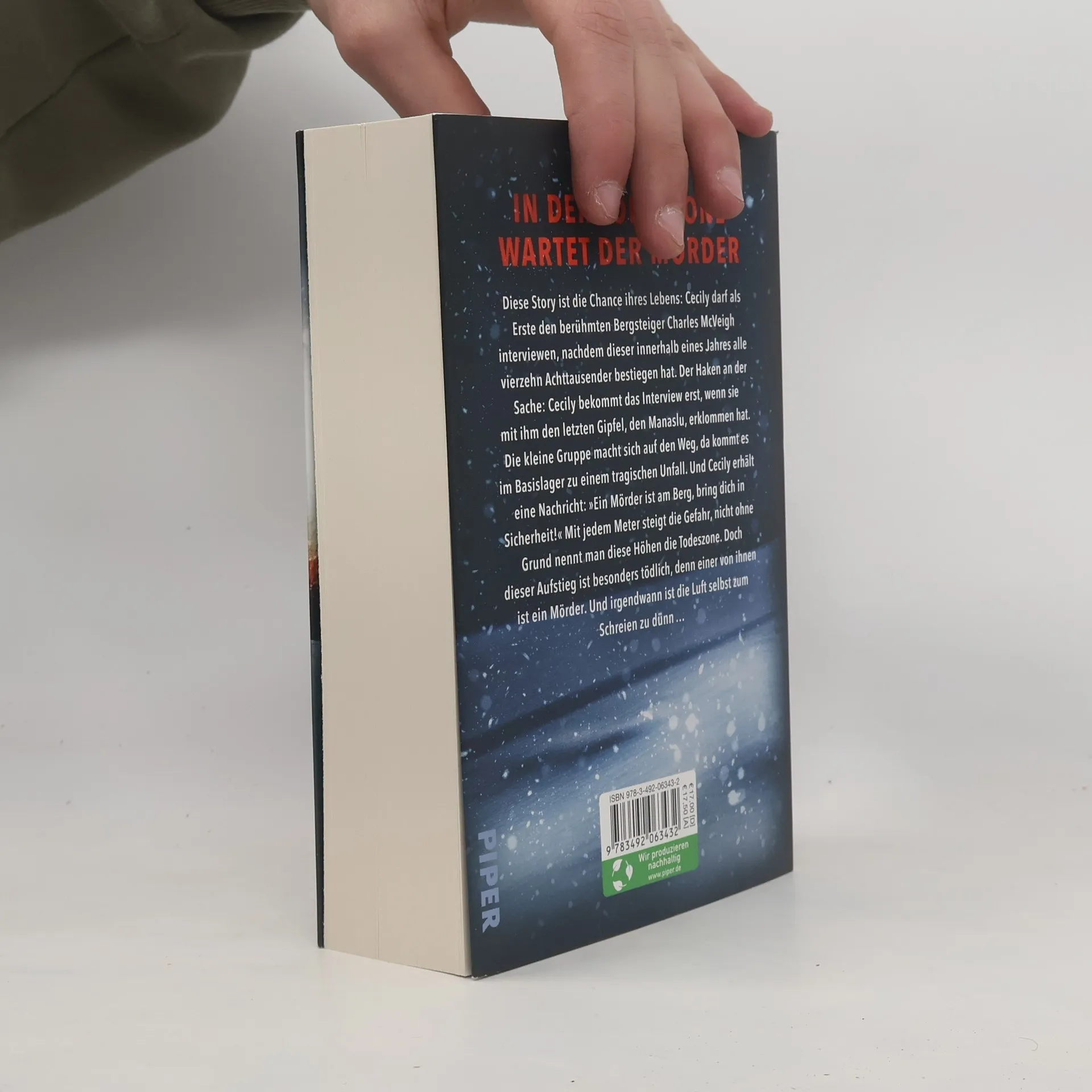 In der Todeszone wartet der Mörder auf sie ... Diese Story ist die Chance ihres Lebens: Cecily darf als Erste den berühmten Bergsteiger Charles McVeigh interviewen, nachdem dieser innerhalb eines Jahres alle vierzehn Achttausender bestiegen hat. Die Sache hat nur einen Haken: Cecily bekommt das Interview erst, wenn sie mit ihm den letzten Gipfel, den Manaslu, erklommen hat. Die kleine Gruppe macht sich auf den Weg, da kommt es im Basislager zu einem tragischen Unfall. Und Cecily erhält eine Nachricht: »Ein Mörder ist am Berg, bring dich in Sicherheit!« Mit jedem Höhenmeter steigt die Gefahr, nicht ohne Grund nennt man diese Höhen die Todeszone. Doch dieser Aufstieg ist besonders tödlich, denn einer von ihnen ist ein Mörder. Und irgendwann ist die Luft selbst zum Schreien zu dünn …