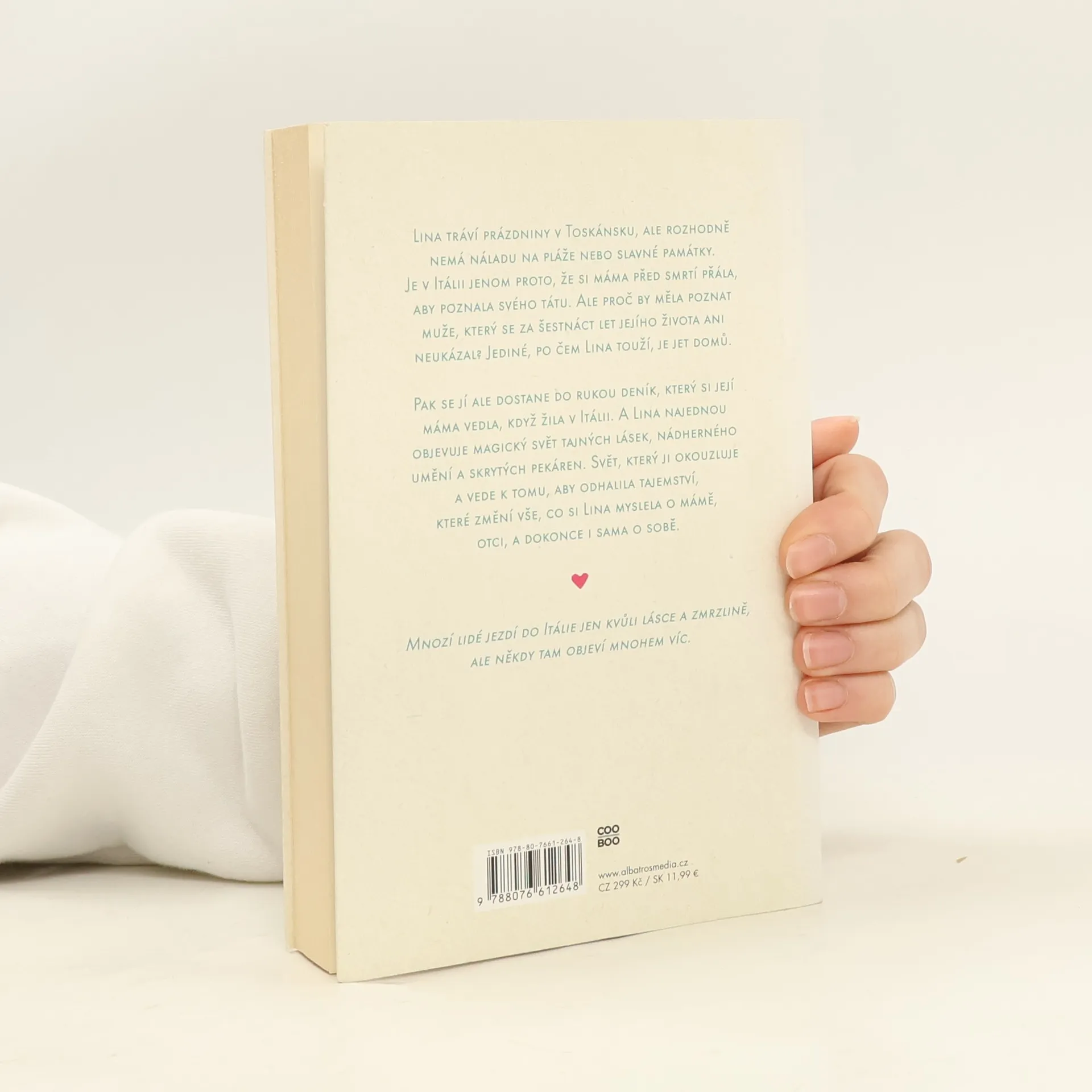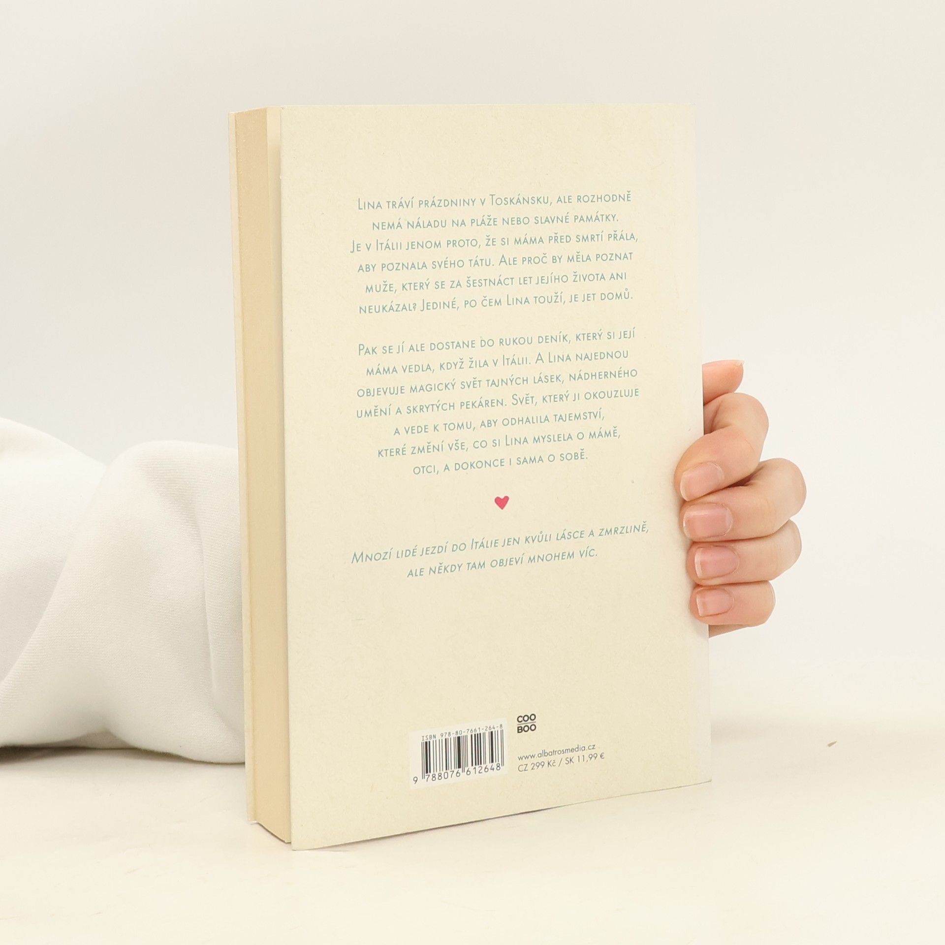 To pravé letní čtení plné lásky a zmrzliny! Lina tráví prázdniny v Toskánsku, ale nemá náladu na pláže nebo památky. Je v Itálii jenom proto, že si máma před smrtí přála, aby poznala svého otce. Ale proč by měla poznat otce, který se za celý její život ani neukázal? Pak se jí ale dostane do rukou deník, který si její máma vedla, když žila v Itálii. A Lina najednou objevuje magický svět tajných lásek, nádherného umění a skrytých pekáren a odhaluje tajemství, které změní vše, co si myslela o mámě, otci, a dokonce i sama o sobě.