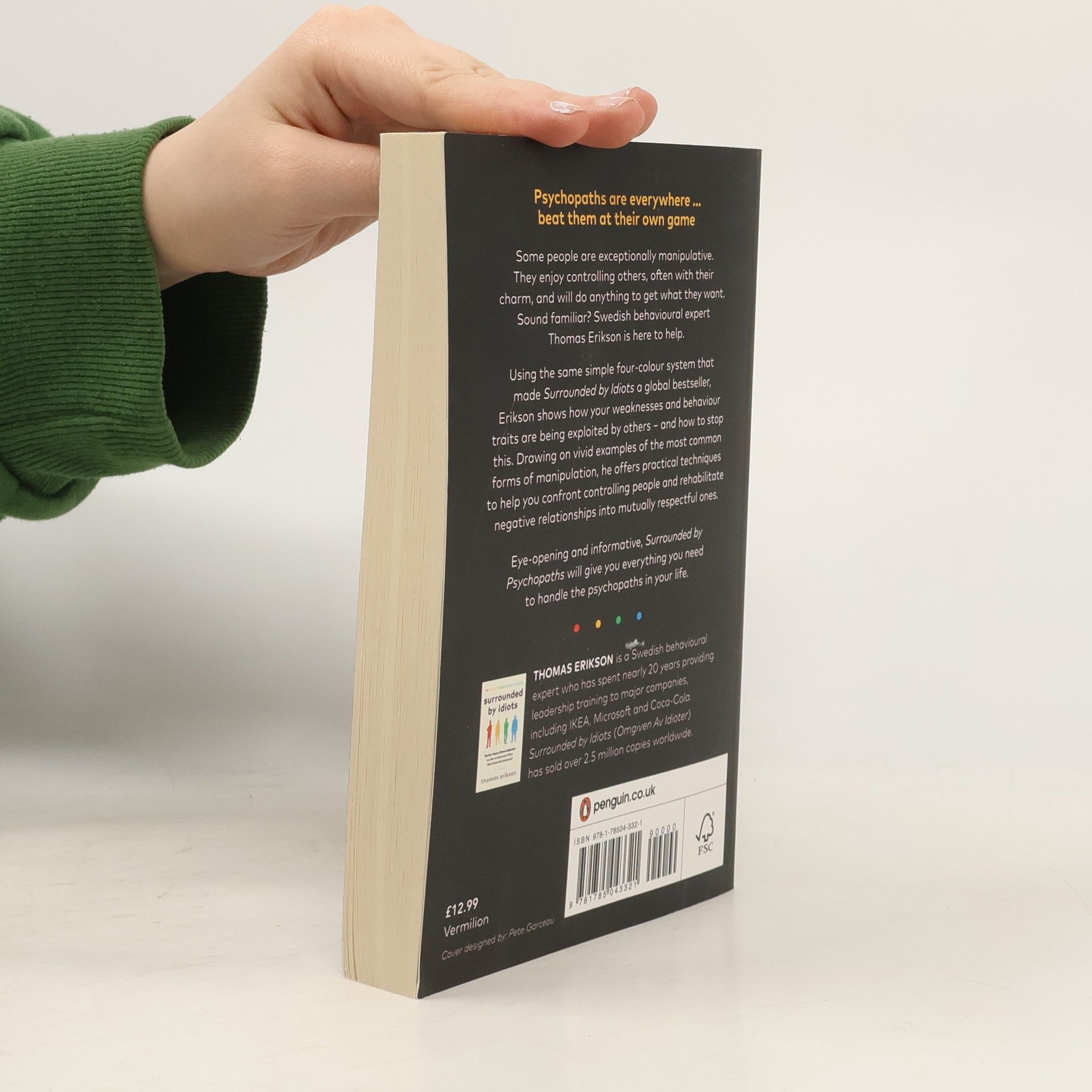 From the Sunday Times bestselling author of Surrounded by Idiots. Some people are exceptionally manipulative. They can convince anyone about anything and lure them with their charm. They enjoy controlling others and will do anything to get what they want. Sound familiar? The bad news is that you can't really escape them. But here comes the good news- you can beat them at their own game. After going through the highs and lows of different personality types (Red, Blue, Green and Yellow) in his international bestseller Surrounded by Idiots, Swedish behavioural expert Thomas Erikson will now show you how your weaknesses and personality traits can be exploited by other people and how you can stop them in their tracks. By learning more about your personality type and how you work, you'll be able to see through any psychopath's manipulative behaviours and fend off their attempts to wreak havoc into your life. Witty, engaging and informative, this book will give you everything you need to handle life's most skilled manipulators and identify the psychopaths in your life... before it's too late!
