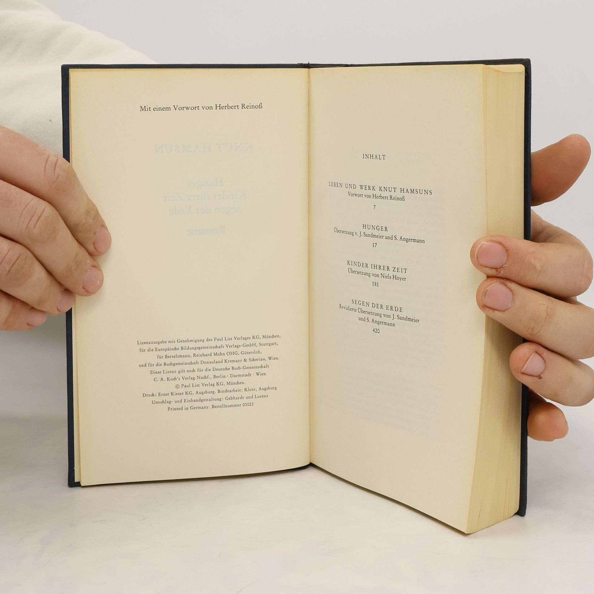 Hunger. Kinder Ihrer Zeit. Segen der Erde, Knut Hamsun
