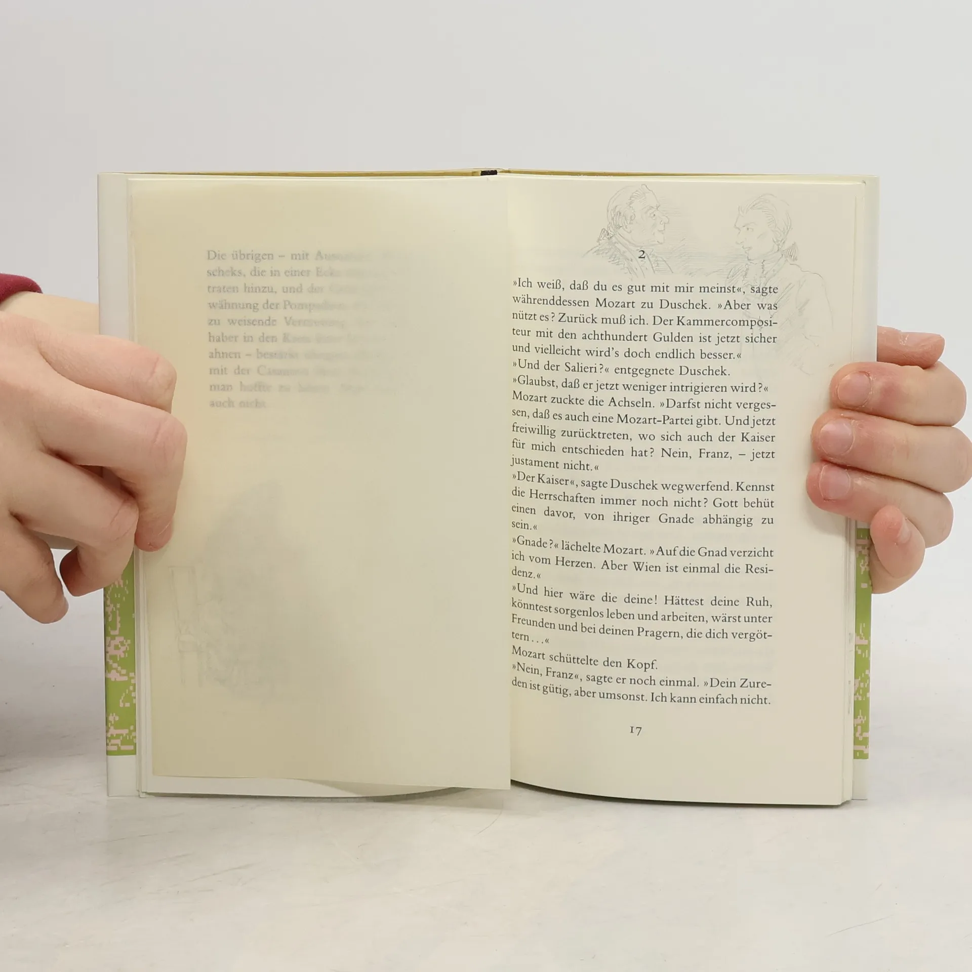 Im gastfreien Hause der Duscheks hat sich eine heitere Künstlergesellschaft versammelt. Es ist der Vorabend der glanzvollen Uraufführung des „Don Giovanni“, und der berühmte Kompositeur Wolfgang Amadeus Mozart ist eigens in die Moldaustadt gereist, um seinen Pragern das neuste Werk zu präsentieren.