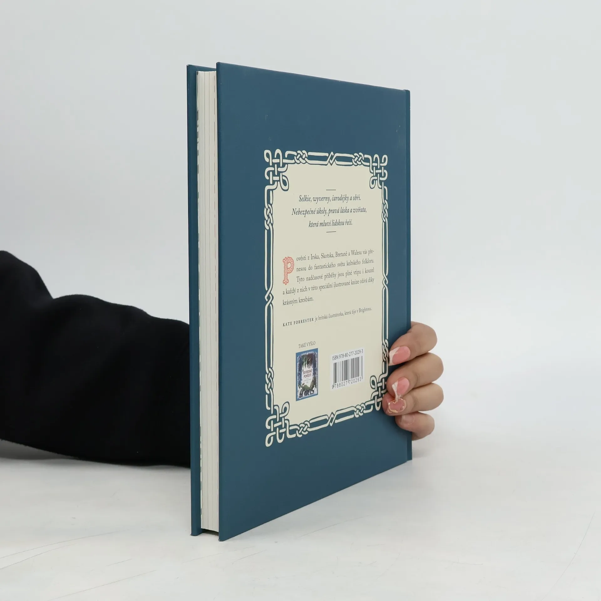 Víly, skřítkové, wyverny, čarodějky a obři. Nebezpečné úkoly, pravá láska a zvířata, co mluví lidskou řečí. Tyto pověsti a příběhy z Irska, Skotska, Bretaně a Walesu vás přenesou do fantastického světa keltského folklóru. Najdete tu moudrost i kouzla, krutý osud i spravedlnost, jež nakonec potrestá každého hříšníka. Setkáte se s hodnou čarodějkou, která umí předpovídat budoucnost, i se zlou čarodějnicí, jež nebohé mládence proměňuje v ryby a pak si na nich pochutnává. Navštívíte hodné skřítky, co smrtelníkům rádi pomohou a bez váhání za ně nasadí život, i ty zlé, co člověka jen týrají a hrají si s ním. Poznáte zvláštního mořského muže, jenž v klecích na dně oceánu drží duše námořníků, kteří se utopili, či bytosti zvané selkie, jež si nepozorný lovec snadno splete s tuleni. Stanete se svědky hrdinných soubojů s obrem, mořským hadem či wyvernou. Knihu zdobí mnoho krásných barevných ilustrací britské malířky Kate Forrester.