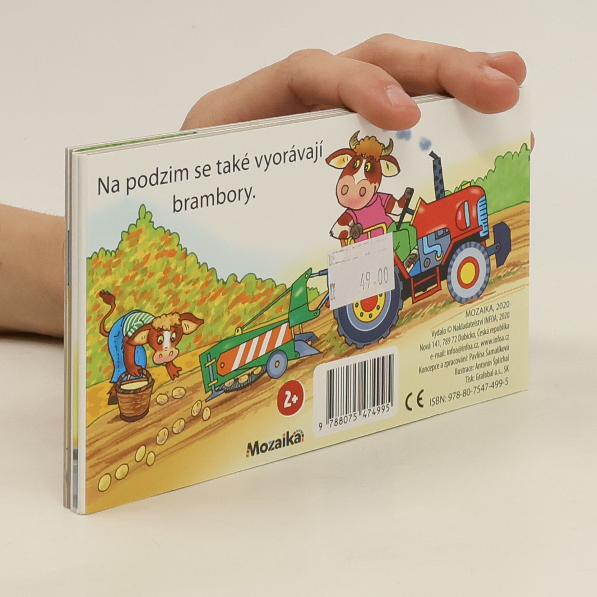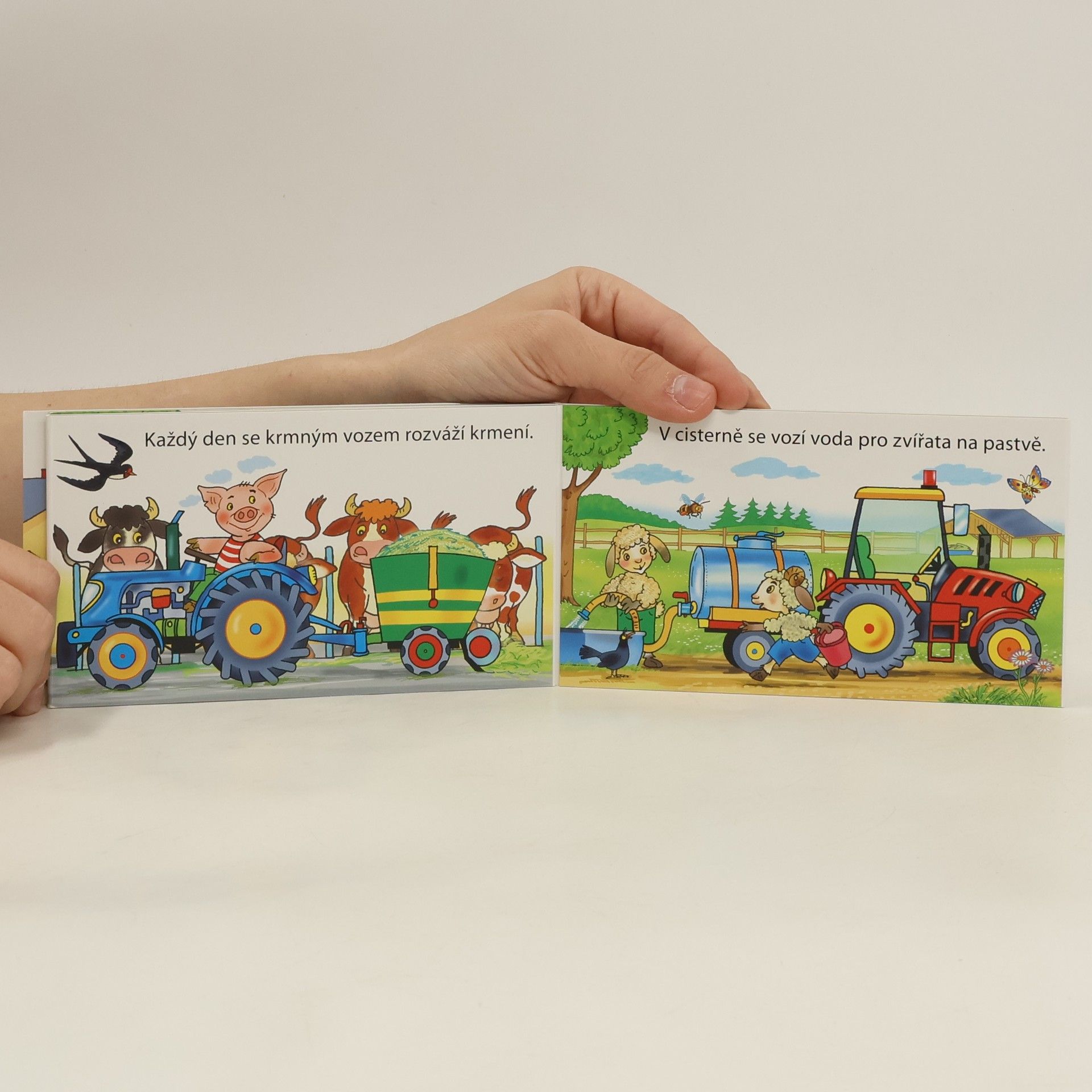 Barevné rozkládací leporelo s krásnými ilustracemi zvířátek ze statku, která používají traktor k různým farmářským úkonům. Traktor na statku zastane během roku hodně práce. Orá, seje, sklízí, vozí... V tomto leporelku plném veselých pestrobarevných obrázků se děti dozvědí, jaký je takový traktor na statku pomocník.