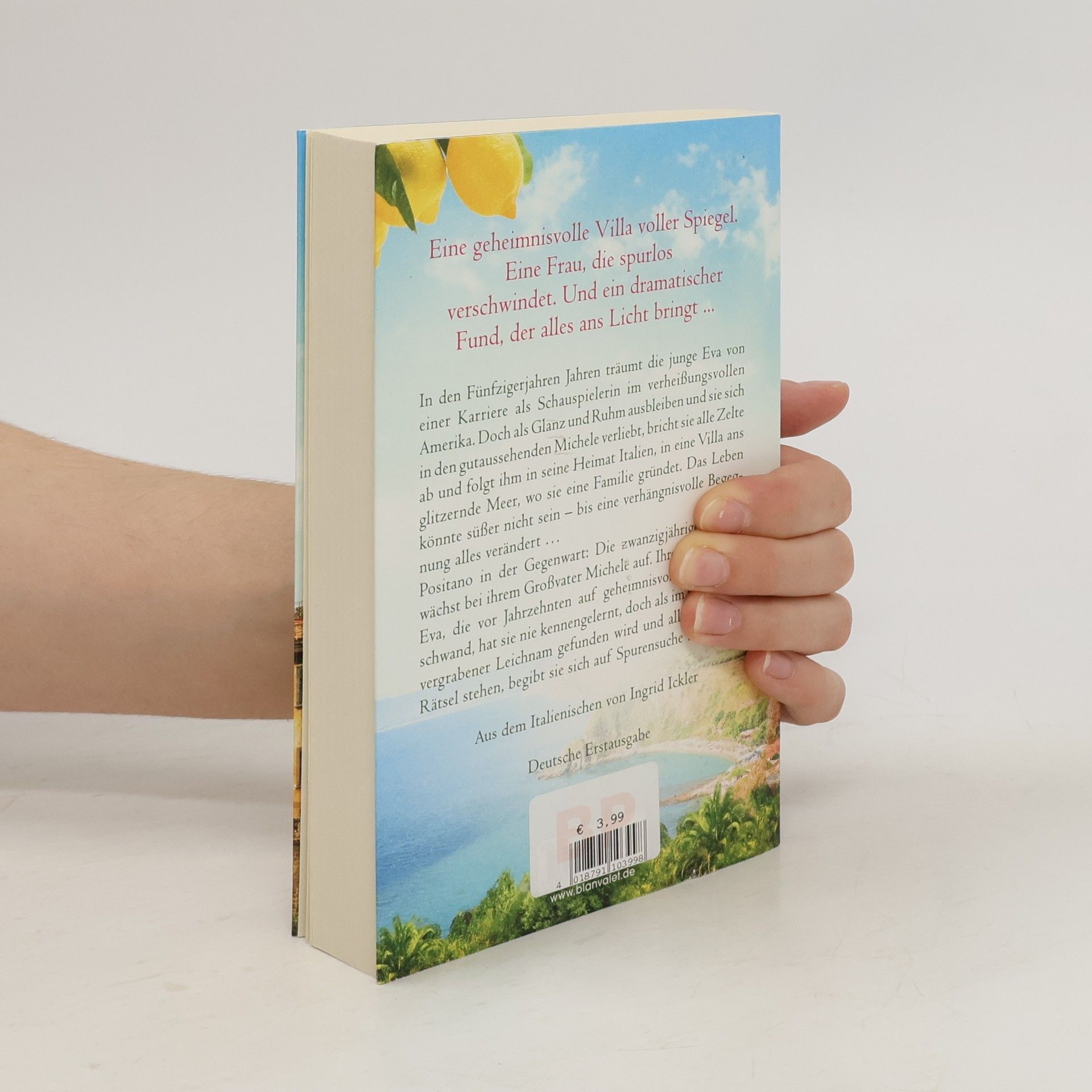 Eine geheimnisvolle Villa voller Spiegel. Eine Frau, die auf rätselhafte Weise verschwindet. Und eine unbeirrbare Heldin, die Jahre später alles ans Licht bringt ... In den 50er Jahren träumt die junge Eva von einer Karriere als Schauspielerin im verheißungsvollen Amerika. Doch als Glanz und Ruhm ausbleiben und sie sich in den gutaussehenden Michele verliebt, bricht sie alle Zelte ab und folgt ihm in seine Heimat Italien, in eine Villa ans glitzernde Meer, wo sie eine Familie gründet. Das Leben könnte süßer nicht sein – bis eine verhängnisvolle Begegnung alles verändert … Positano in der Gegenwart: Die zwanzigjährige Milena wächst bei ihrem Großvater Michele auf. Ihre Großmutter Eva, die vor Jahrzehnten auf geheimnisvolle Weise verschwand, hat sie nie kennengelernt, doch als im Garten ein vergrabener Leichnam gefunden wird und alle vor einem Rätsel stehen, begibt sie sich auf Spurensuche …