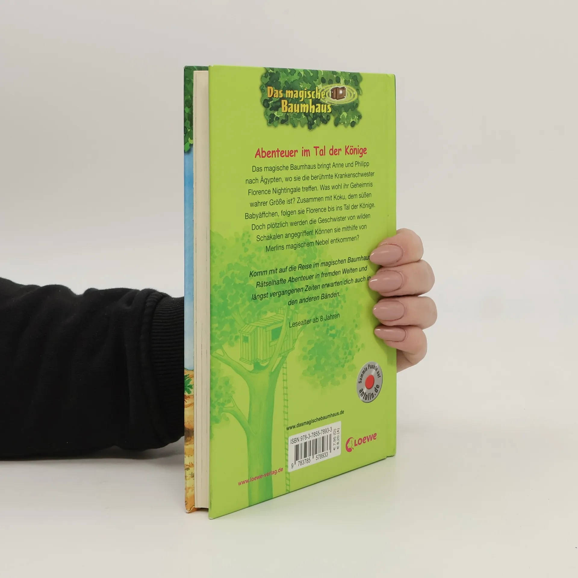 Das Buch ist bei deiner Buchhandlung vor Ort und bei vielen Online-Buchshops erhältlich! + Bücher, die Kinder gerne lesen wollen + Beliebte Themen: Abenteuer, Tiere und fremde Länder + Hochwertiges Hardcover + Mit vielen Illustrationen + Bereits über 10 Millionen verkaufte Bücher der Baumhaus-Reihe + Ausgewogenes Text-Bild-Verhältnis + Große Schrift + Kurze Kapitel + Das magische Baumhaus bringt Anne und Philipp nach Ägypten, wo sie die berühmte Krankenschwester Florence Nightingale treffen. Was wohl ihr Geheimnis wahrer Größe ist? Zusammen mit Koku, dem süßen Babyäffchen, folgen sie Florence bis ins Tal der Könige. Doch plötzlich werden die Geschwister von wilden Schakalen angegriffen! Können sie mit Hilfe von Merlins magischem Nebel entkommen? Komm mit auf die Reise im magischen Baumhaus! Rätselhafte Abenteuer in fremden Welten und längst vergangenen Zeiten erwarten dich auch in den anderen Bänden. Die beliebte Kinderbuch-Reihe von Bestsellerautorin Mary Pope Osborne! Die Geschwister Anne und Philipp reisen mit dem magischen Baumhaus durch die Zeit. Sie erleben spannende Abenteuer, entdecken ferne Länder und lernen viele berühmte Persönlichkeiten kennen. Mehr Infos zur Reihe und tolle Extras unter: www. MagischesBaumhaus. de