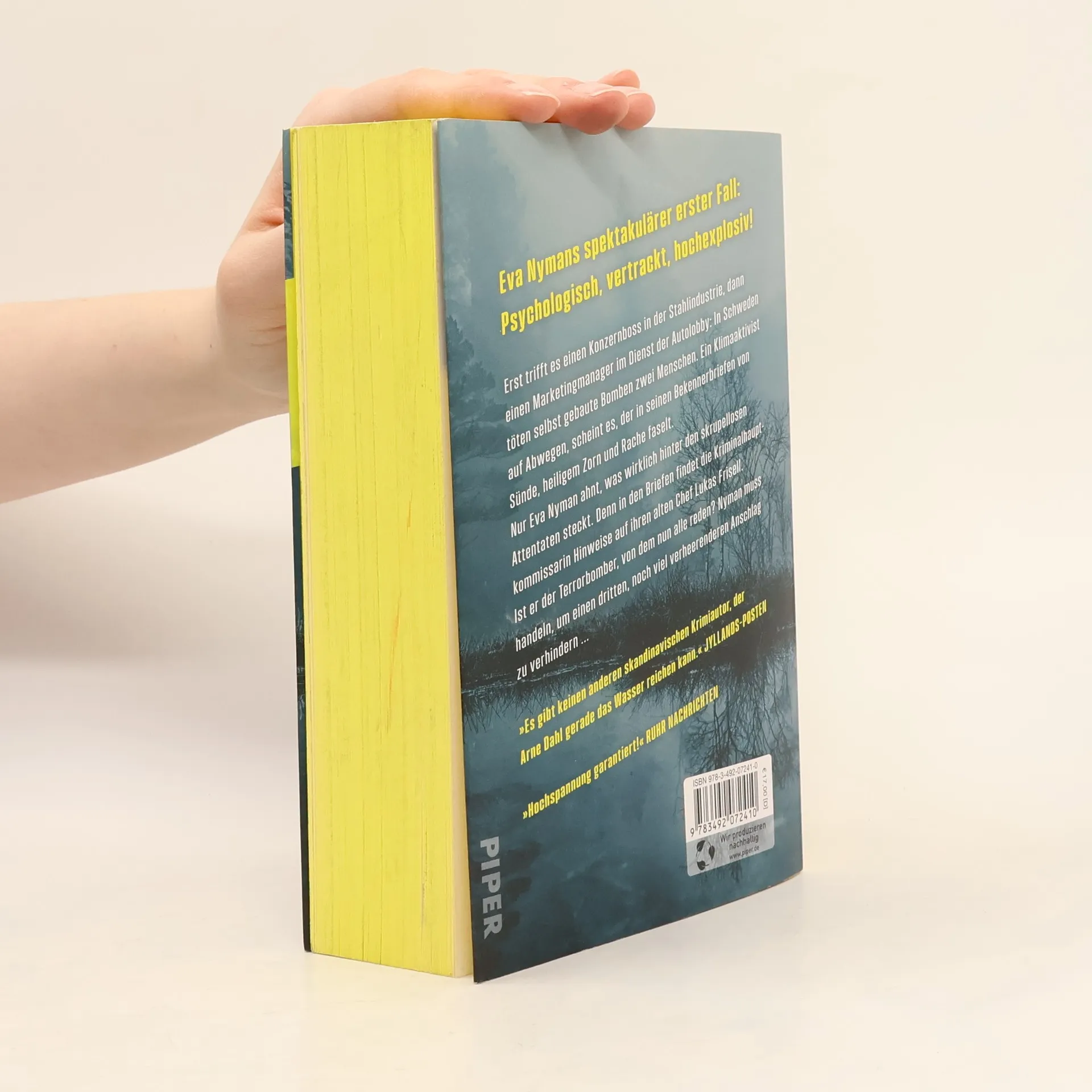 Eva Nymans 1. Fall: Verbrechen im Namen des Klimas Erst trifft es einen Konzernboss in der Stahlindustrie, dann einen Marketingmanager im Dienst der Autolobby: In Schweden töten selbst gebaute Bomben zwei Menschen, bevor der Attentäter Kontakt mit der Polizei aufnimmt – und mit mehr droht. Ein Klimaaktivist auf Abwegen, scheint es, der in seinen Briefen von Sünde, heiligem Zorn und Rache faselt. Nur Eva Nyman, Kriminalkommissarin und Chefin eines eingeschweißten kleinen Teams, ahnt, dass mehr hinter den skrupellosen Taten steckt. Was sie verschweigt: In den Briefen finden sich Hinweise auf ihren alten Vorgesetzten Lukas Frisell. Doch kann Frisell wirklich der »Terrorbomber« sein, von dem alle reden? Nyman muss handeln, um einen dritten, noch viel verheerenderen Anschlag zu verhindern ... Der spektakuläre Auftakt zur neuen Reihe: Psychologisch, vertrackt, hochexplosiv! »Von der groß angelegten Sozialkritik zum zutiefst Persönlichen, immer sprachlich brillant, durch die gute Recherche verbürgt und zu hochdramatischer Spannung verdichtet: Arne Dahls Roman überzeugt auf ganzer Linie. Gut möglich, dass dies seine beste Krimireihe werden wird.« Kapprakt »Arne Dahl zeigt einmal mehr, wie gut, glänzend geschrieben, witzig und leidenschaftlich aktuell ein Schwedenkrimi sein kann.« Skånska Dagbladet