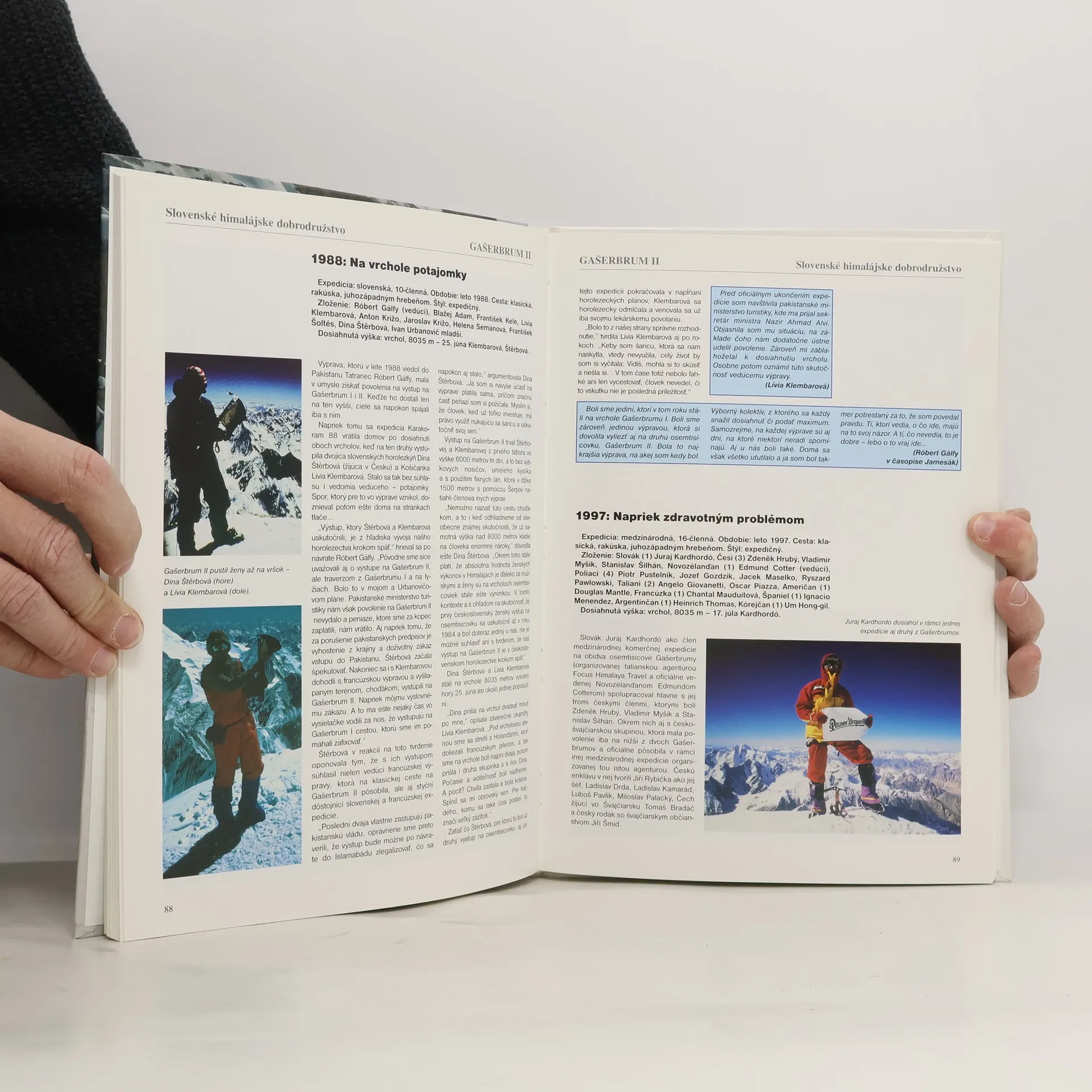 Kniha je bohato ilustrovaná farebnými fotografiami, ktorých autormi sú mnohí poprední slovenskí himalájisti. Nechýbajú ani všetky existujúce vrcholové zábery Slovákov na najvyšších končiaroch sveta. V záverečných bohatých štatistikách čitateľ nájde okrem iného aj fotoportréty a predstavenie všetkých 159 účastníkov na osemtisícovky zo Slovenska zo 66 expedícií. V knihe sú publikované aj všetky vydané expedičné pohľadnice, odznaky a vlajky. Jedna kapitola je venovaná aj expedíciám na nižšie ako osemtisícové himalájske štíty.