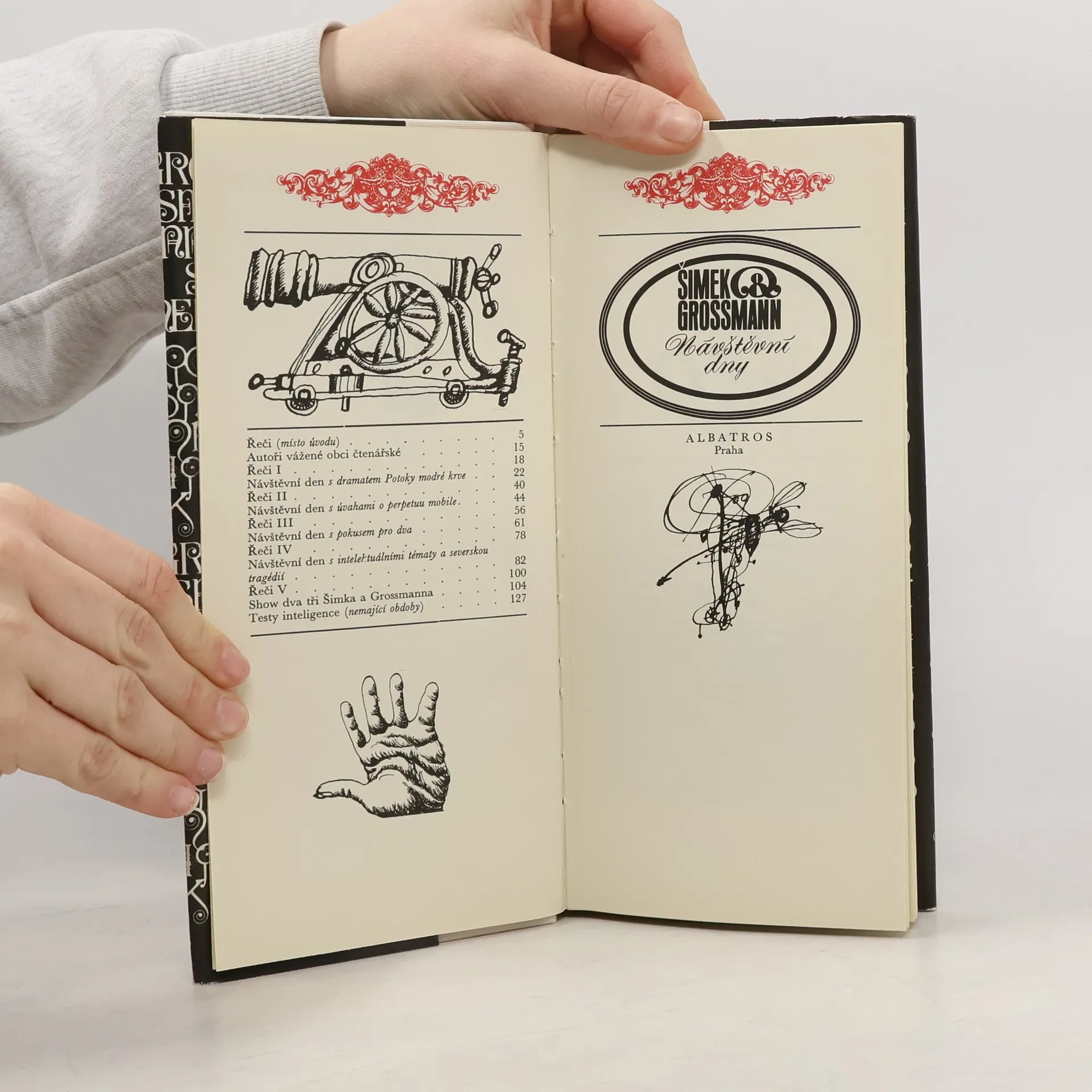 Výbor obsahuje televizní scénáře seriálu Návštěvní den, ve kterých najdeme 4 z nejpopulárnějších povídek Š+G. Na závěr knihy jsou zařazeny humorné testy inteligence. Jednotlivé pasáže knihy jsou spojeny Šimkovými vzpomínkami na historii vzniku a působení této dvojice komiků