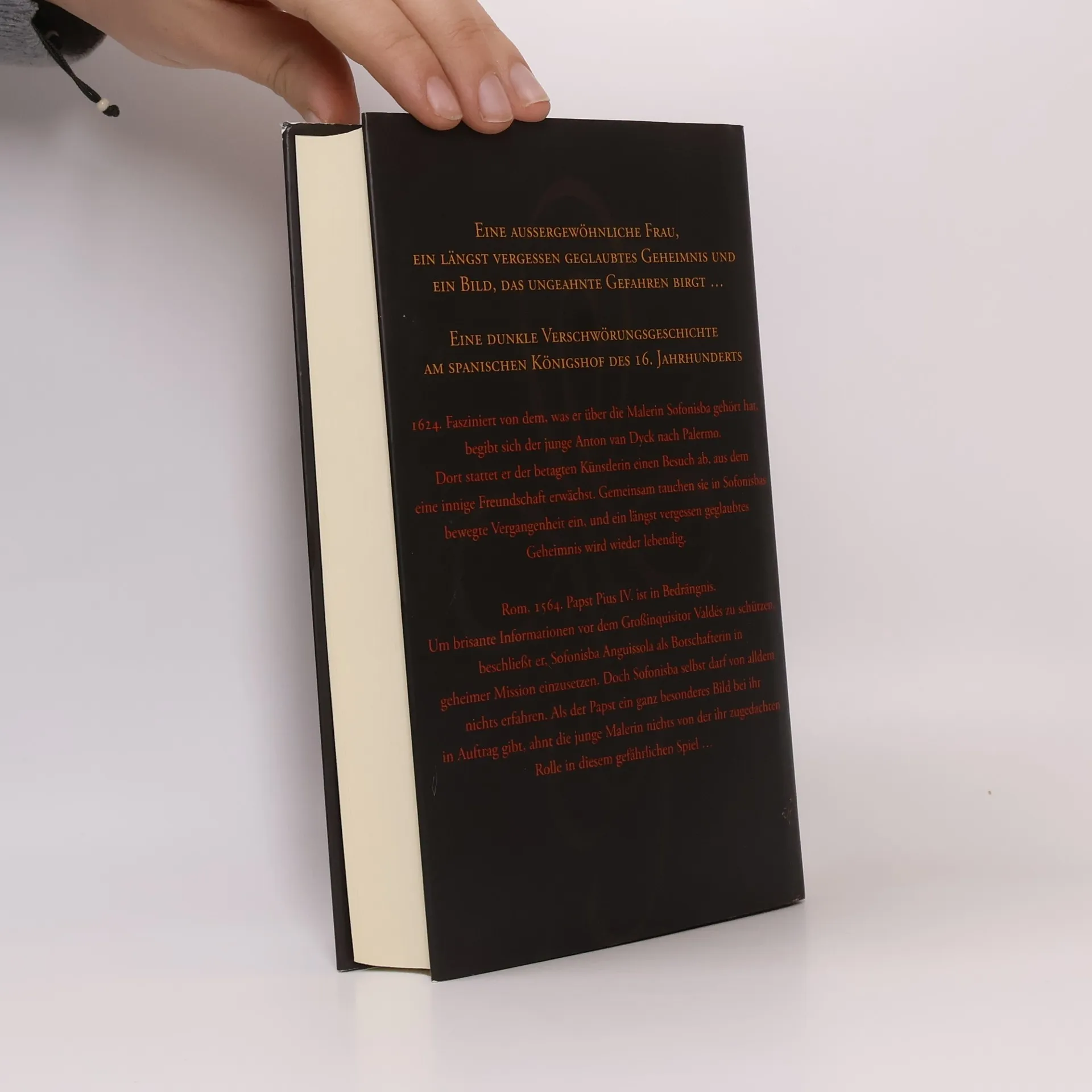 Im Jahre 1624 begibt sich der junge Anton van Dyck nach Palermo, um der hochbetagten Malerin Sofonisba Anguissola einen Besuch abzustatten. Van Dyck ist von der charismatischen Persönlichkeit Sofonisbas tief beeindruckt, und so entwickelt sich aus ihren Gesprächen schon bald eine innige Freundschaft. Gemeinsam tauchen sie in die bewegte Vergangenheit der Malerin ein, und ein längst vergessen geglaubtes Geheimnis wird wieder lebendig. Rom, 1564. Papst Pius IV. ist in Bedrängnis. Um brisante Informationen vor dem Großinquisitor Valdés zu schützen, beschließt er, Sofonisba Anguissola, die als Gesellschafterin am Hof der spanischen Königin Elisabeth von Valois lebt, als Botschafterin in geheimer Mission einzusetzen. Sofonisba selbst darf von der ihr zugedachten Rolle nichts erfahren. Vom Papst erhält sie den ehrenvollen Auftrag, ein Bild anzufertigen, das sie selbst beim Malen der Madonna zeigt. Ahnungslos von dem tatsächlichen Grund ihres Auftrags, macht sich Sofonisba an die Arbeit ...