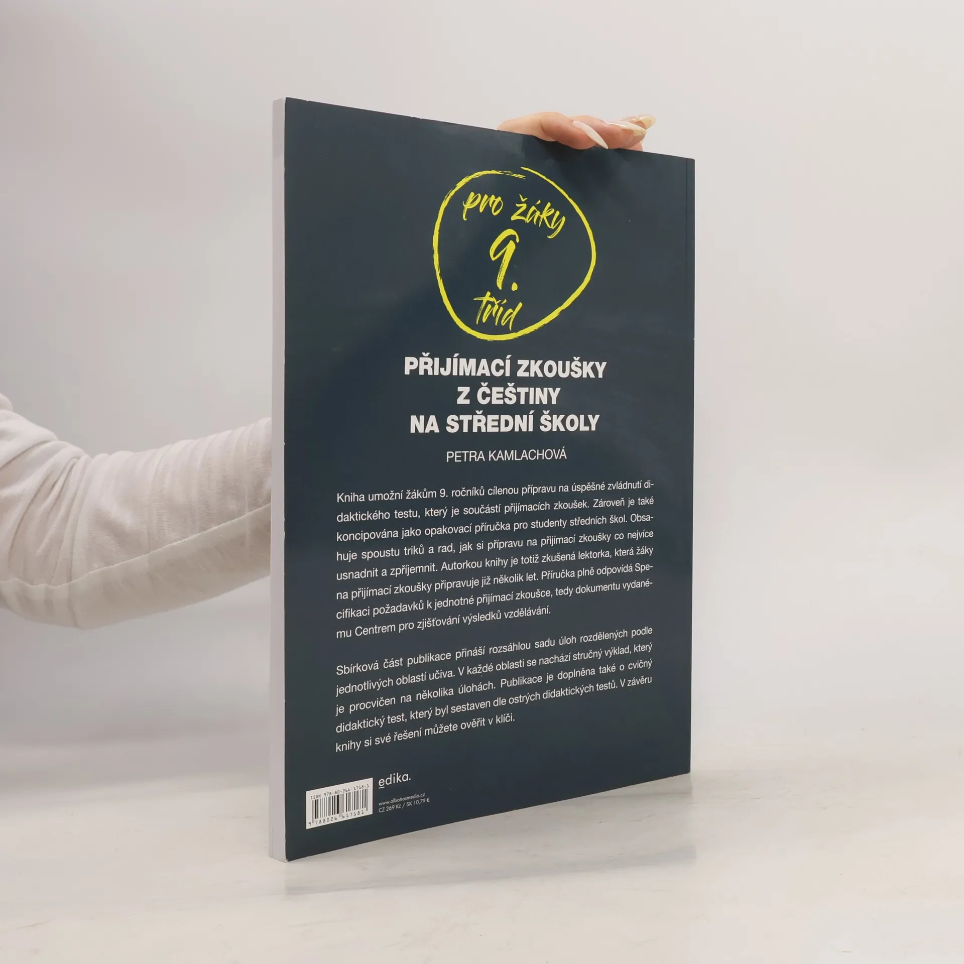 Kniha umožní žákům 9. ročníků cílenou přípravu na úspěšné zvládnutí didaktického testu, který je součástí přijímacích zkoušek. Autorkou knihy je totiž zkušená lektorka, která žáky na přijímací zkoušky připravuje již několik let. Příručka plně odpovídá Specifikaci požadavků k jednotné přijímací zkoušce, tedy dokumentu vydanému Centrem pro zjišťování výsledků vzdělávání.