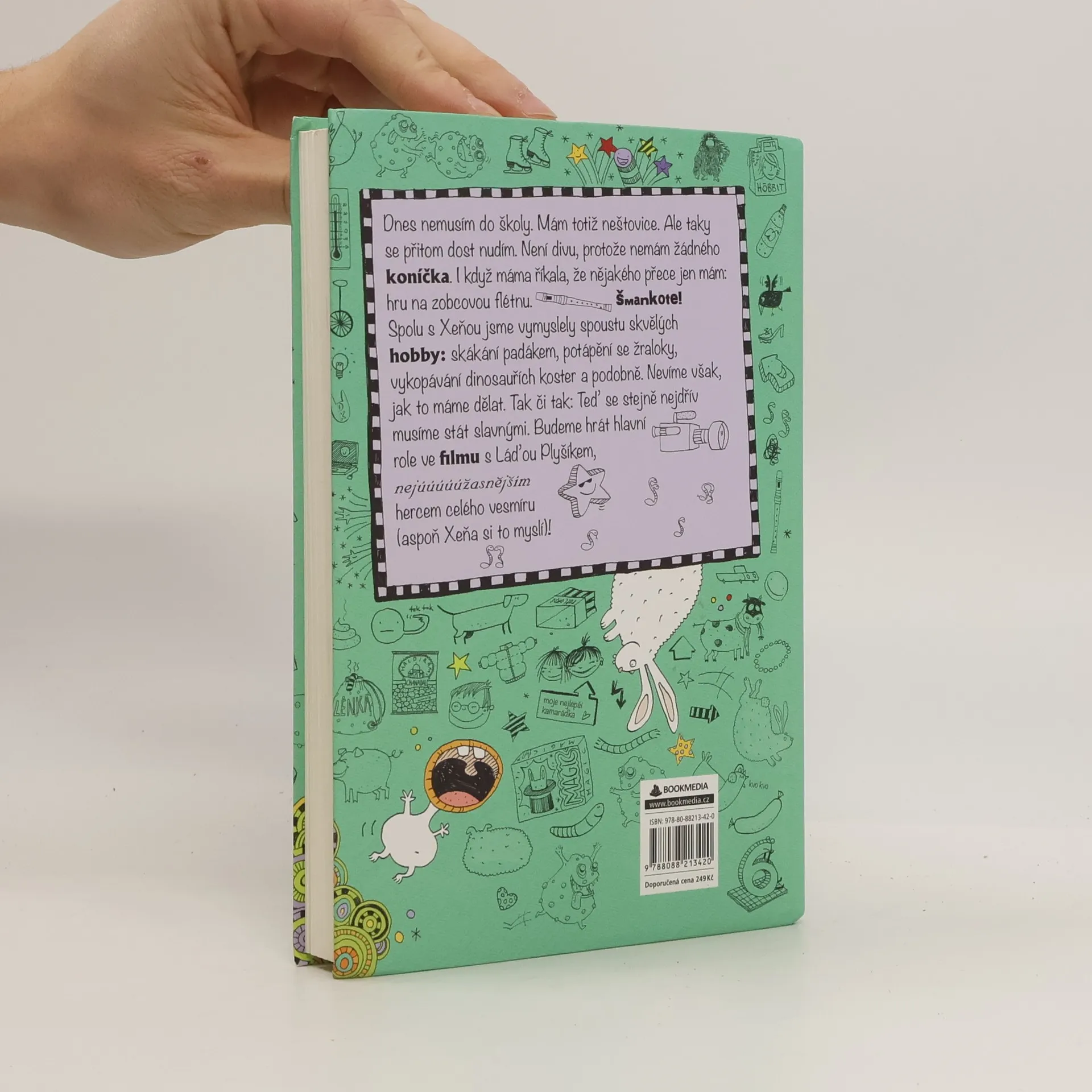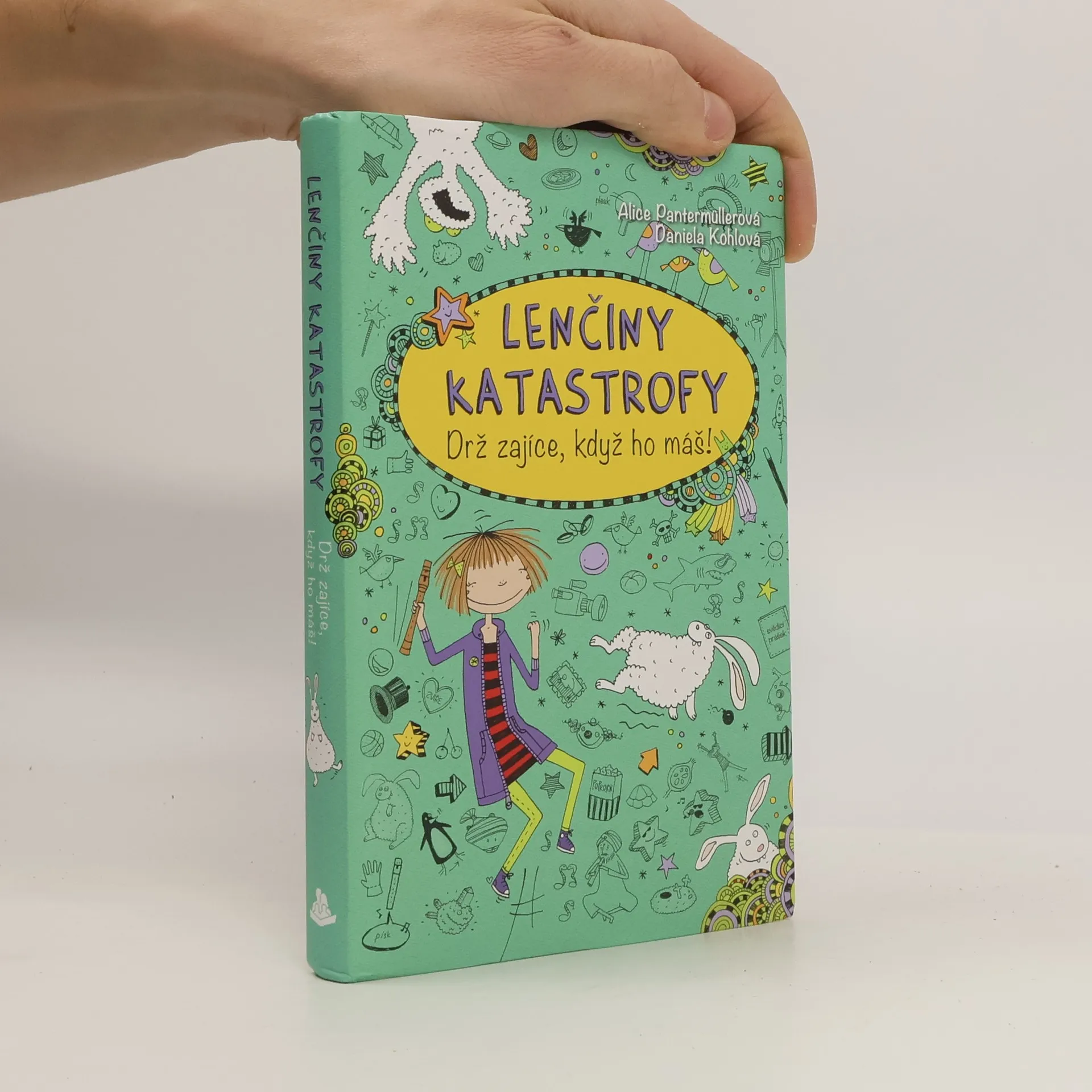 Lenčiny katastrofy 4 - Drž zajíce, když ho máš! jsou čtvrtým dílem dobrodružství Lenky Patrmanové, která si píše deník plný legrace. Dnes nemusím do školy. Mám totiž neštovice. Ale taky se přitom dost nudím. Není divu, protože nemám žádného koníčka. I když máma říkala, že nějakého přece jen mám: hru na zobcovou flétnu. Šmankote! Spolu s Xeňou jsme vymyslely spoustu skvělých hobby: skákání padákem, potápění se žraloky, vykopávání dinosauřích koster a podobně. Nevíme však, jak to máme dělat. Tak či tak: Teď se stejně nejdřív musíme stát slavnými. Budeme hrát hlavní role ve filmu s Láďou Plyšíkem, nejúúúúúžasnějším hercem celého vesmíru (aspoň Xeňa si to myslí)!