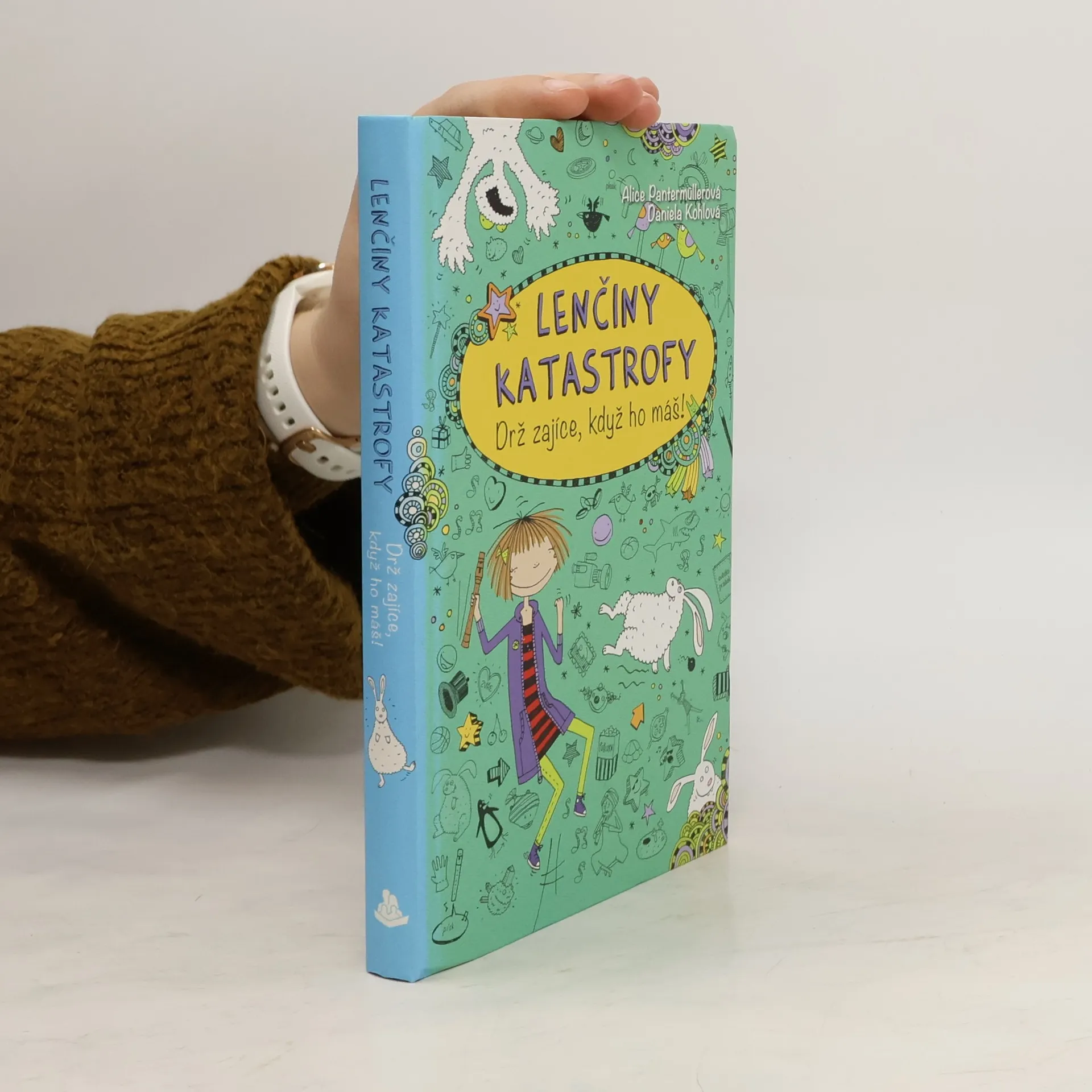 Lenčiny katastrofy 4 - Drž zajíce, když ho máš! jsou čtvrtým dílem dobrodružství Lenky Patrmanové, která si píše deník plný legrace. Dnes nemusím do školy. Mám totiž neštovice. Ale taky se přitom dost nudím. Není divu, protože nemám žádného koníčka. I když máma říkala, že nějakého přece jen mám: hru na zobcovou flétnu. Šmankote! Spolu s Xeňou jsme vymyslely spoustu skvělých hobby: skákání padákem, potápění se žraloky, vykopávání dinosauřích koster a podobně. Nevíme však, jak to máme dělat. Tak či tak: Teď se stejně nejdřív musíme stát slavnými. Budeme hrát hlavní role ve filmu s Láďou Plyšíkem, nejúúúúúžasnějším hercem celého vesmíru (aspoň Xeňa si to myslí)!