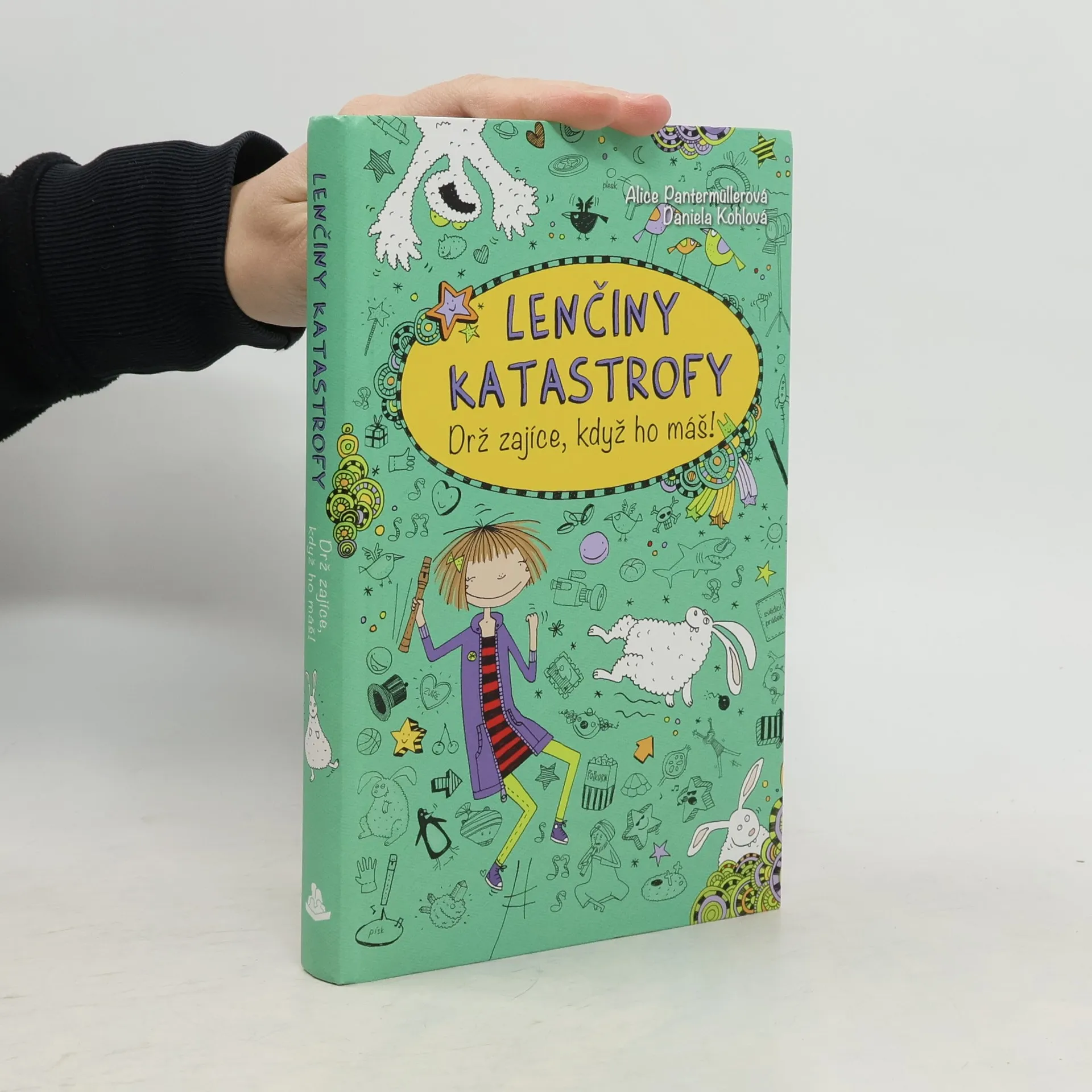 Lenčiny katastrofy 4 - Drž zajíce, když ho máš! jsou čtvrtým dílem dobrodružství Lenky Patrmanové, která si píše deník plný legrace. Dnes nemusím do školy. Mám totiž neštovice. Ale taky se přitom dost nudím. Není divu, protože nemám žádného koníčka. I když máma říkala, že nějakého přece jen mám: hru na zobcovou flétnu. Šmankote! Spolu s Xeňou jsme vymyslely spoustu skvělých hobby: skákání padákem, potápění se žraloky, vykopávání dinosauřích koster a podobně. Nevíme však, jak to máme dělat. Tak či tak: Teď se stejně nejdřív musíme stát slavnými. Budeme hrát hlavní role ve filmu s Láďou Plyšíkem, nejúúúúúžasnějším hercem celého vesmíru (aspoň Xeňa si to myslí)!