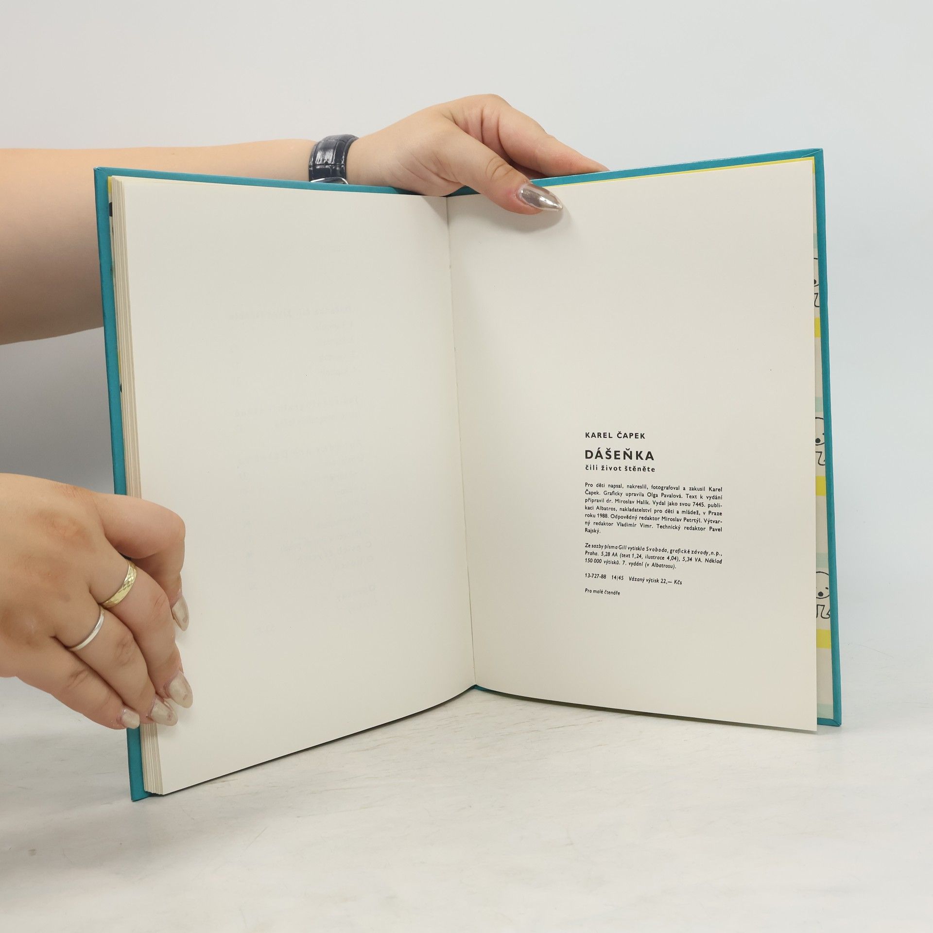 Jedna z nejoblíbenějších českých dětských knížek. Karel Čapek, který ji pro děti „napsal a zakusil“, si pořídil do domu na Vinohradech nejprve airdala, pak drsnosrstého teriéra Iris, mámu Dášeňky. Tahle krásná knížka kromě Života štěněte obsahuje i kapitoly Jak se fotografuje štěně a Pohádky pro Dášeňku, O psích zvycích nebo třeba O lidech.