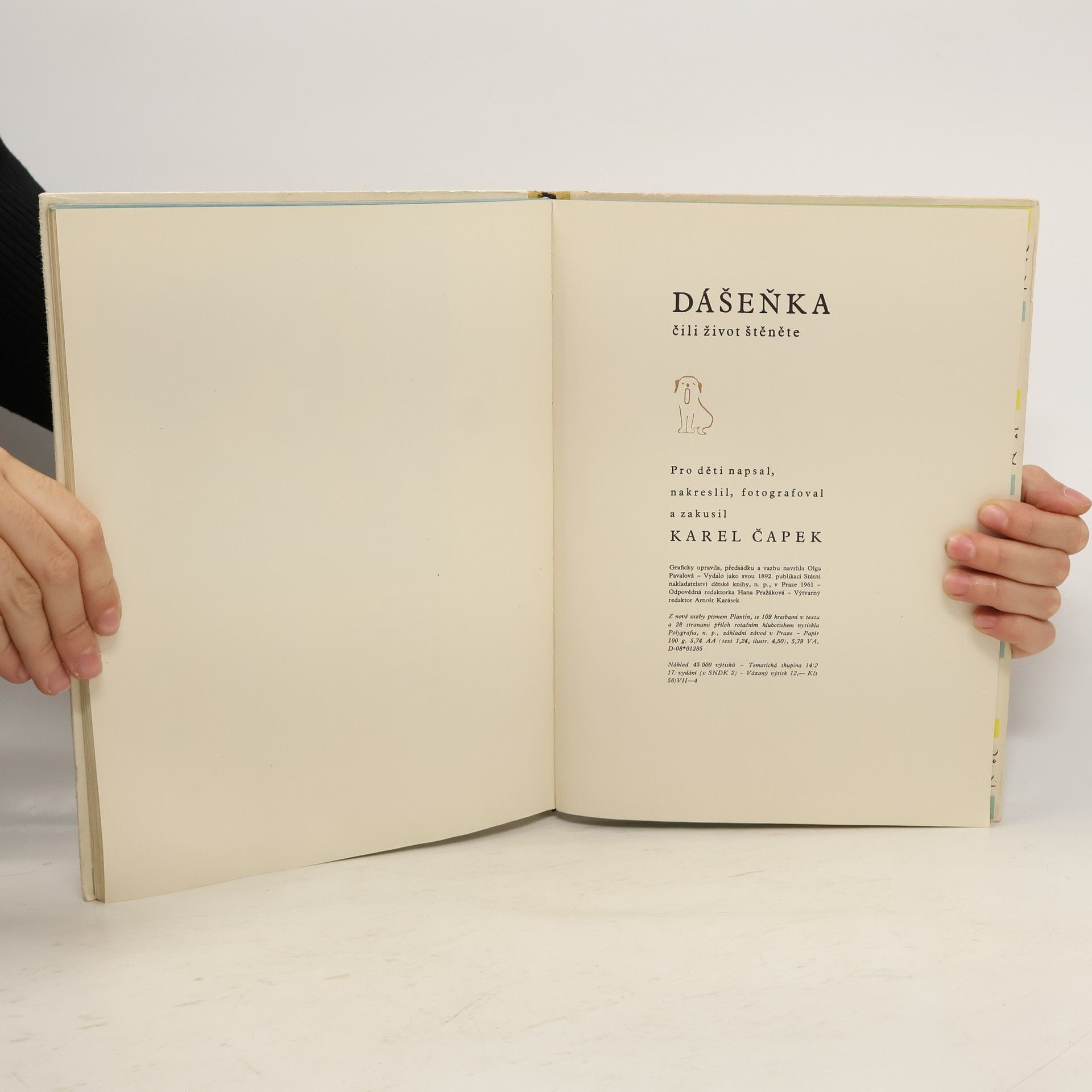 Jedna z nejoblíbenějších českých dětských knížek vznikla už před 70 lety. Karel Čapek, který ji pro děti „napsal a zakusil“, si pořídil do domu na Vinohradech nejprve airdala, pak drsnosrstého teriéra Iris, mámu Dášeňky. Tahle krásná knížka kromě Života štěněte obsahuje i kapitoly Jak se fotografuje štěně a Pohádky pro Dášeňku, O psích zvycích nebo třeba O lidech. Půvabné vyprávění i obrázky budou provázet vaše děti po celý život; jednou s nimi seznámí zase svoje děti.