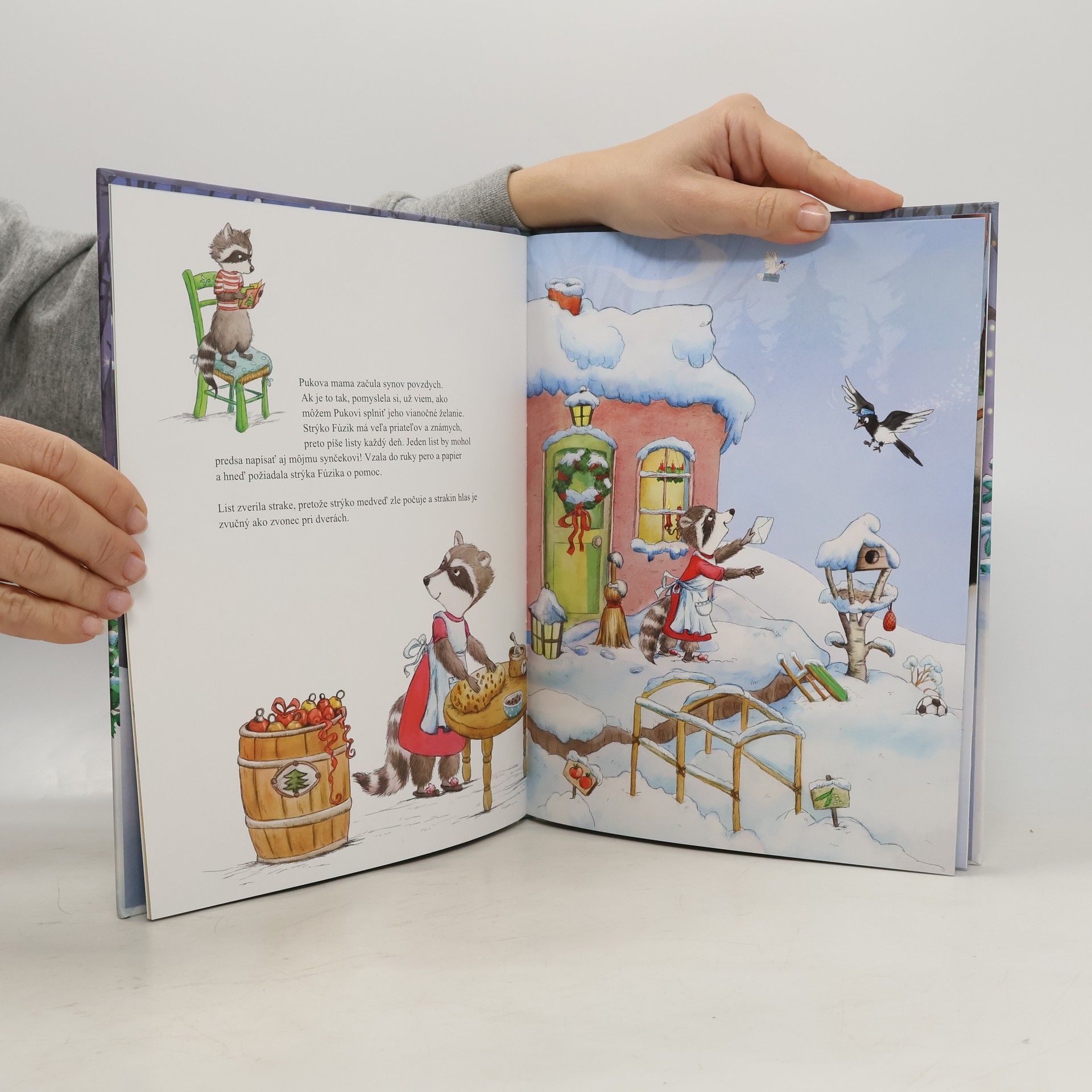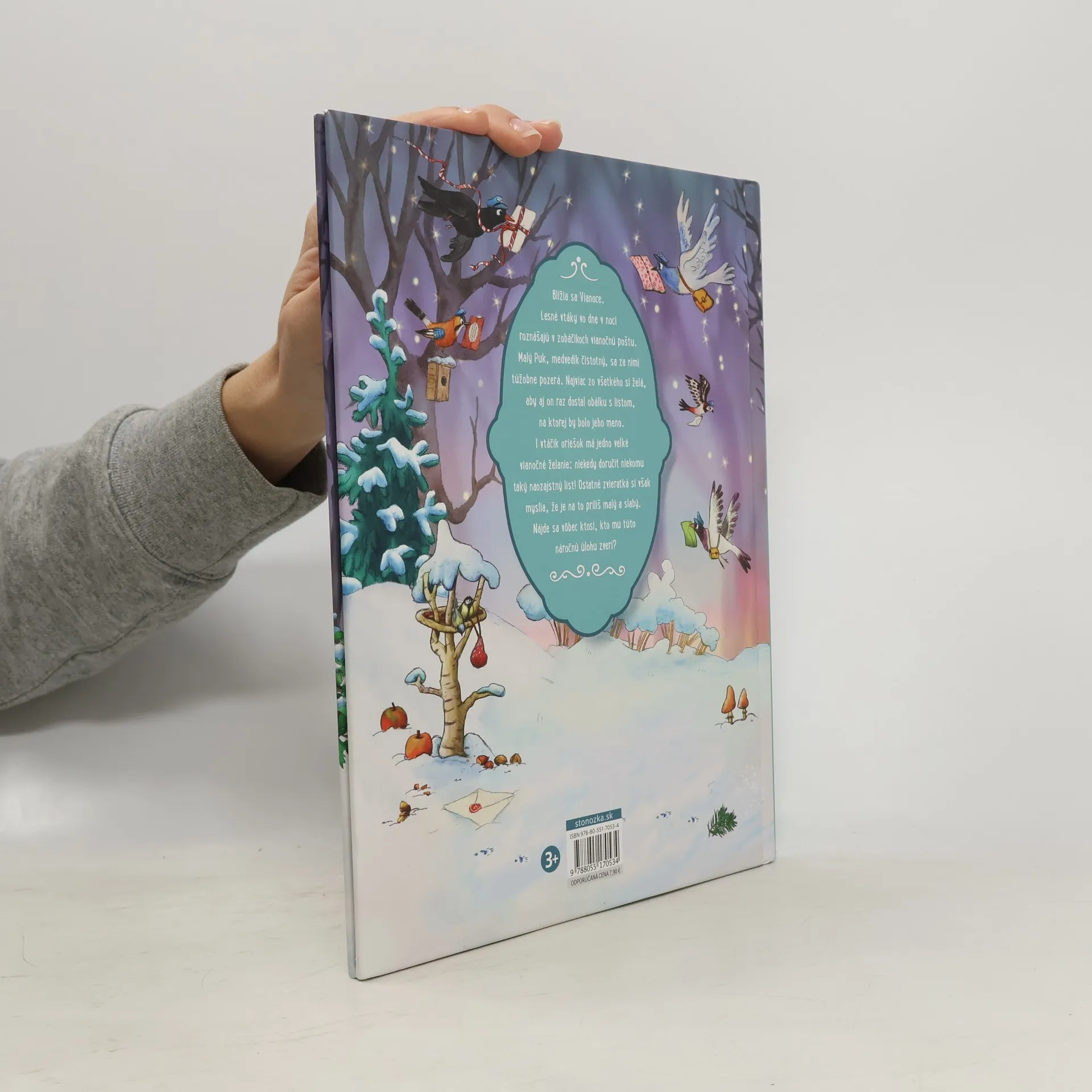 Blížia sa Vianoce. Lesné vtáky vo dne v noci roznášajú v zobáčikoch vianočnú poštu. Malý Puk, medvedík čistotný,sa za nimi túžobne pozerá. Najviac zo všetkého si želá,aby aj on raz dostal obálku s listom,na ktorej by bolo jeho meno. I vtáčik oriešok má jedno veľké vianočné želanie: niekedy doručiť niekomu taký ozajstný list! Ozajstné zvieratká si však myslia, že je na to príliš malý a slabý. Nájde sa vôbec ktosi,kto mu túto náročnú úlohu zverí?