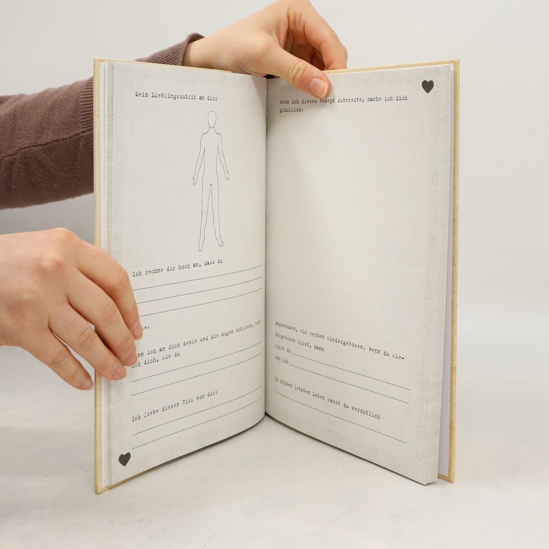 Dieses Ausfüllbuch offenbart auf einen Blick, warum zwei Menschen in Liebe verbunden sind. In dem Buch werden tiefgründige, witzige und emotionale Fragen oder Denkaufträge gestellt, die alle nur ein Ziel haben: die Liebe zwischen zwei Menschen in Worte zu fassen. Das Buch ist das perfekte Geschenk – wenn es ausgefüllt ist, ist es zudem ein wunderschöner Liebesbeweis.