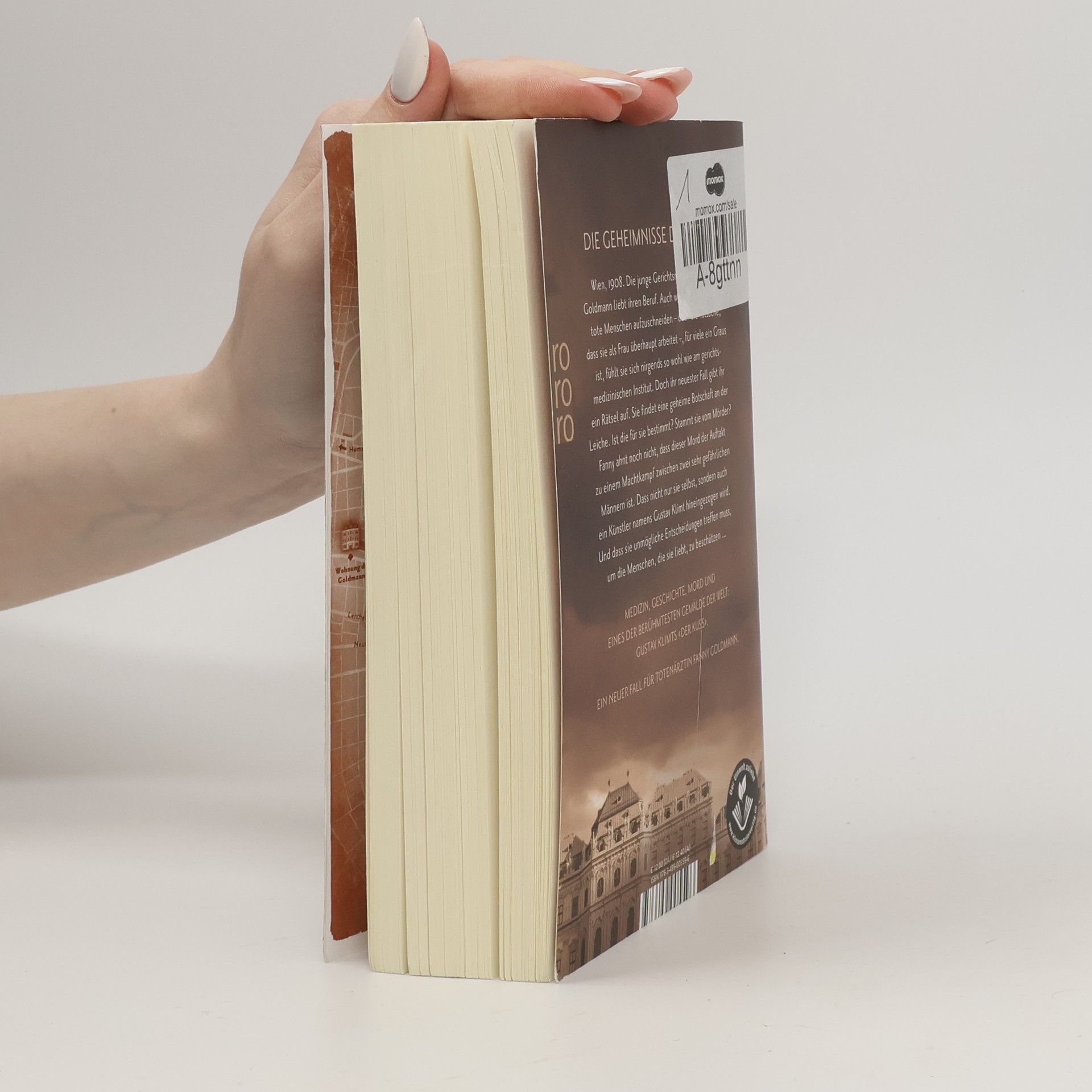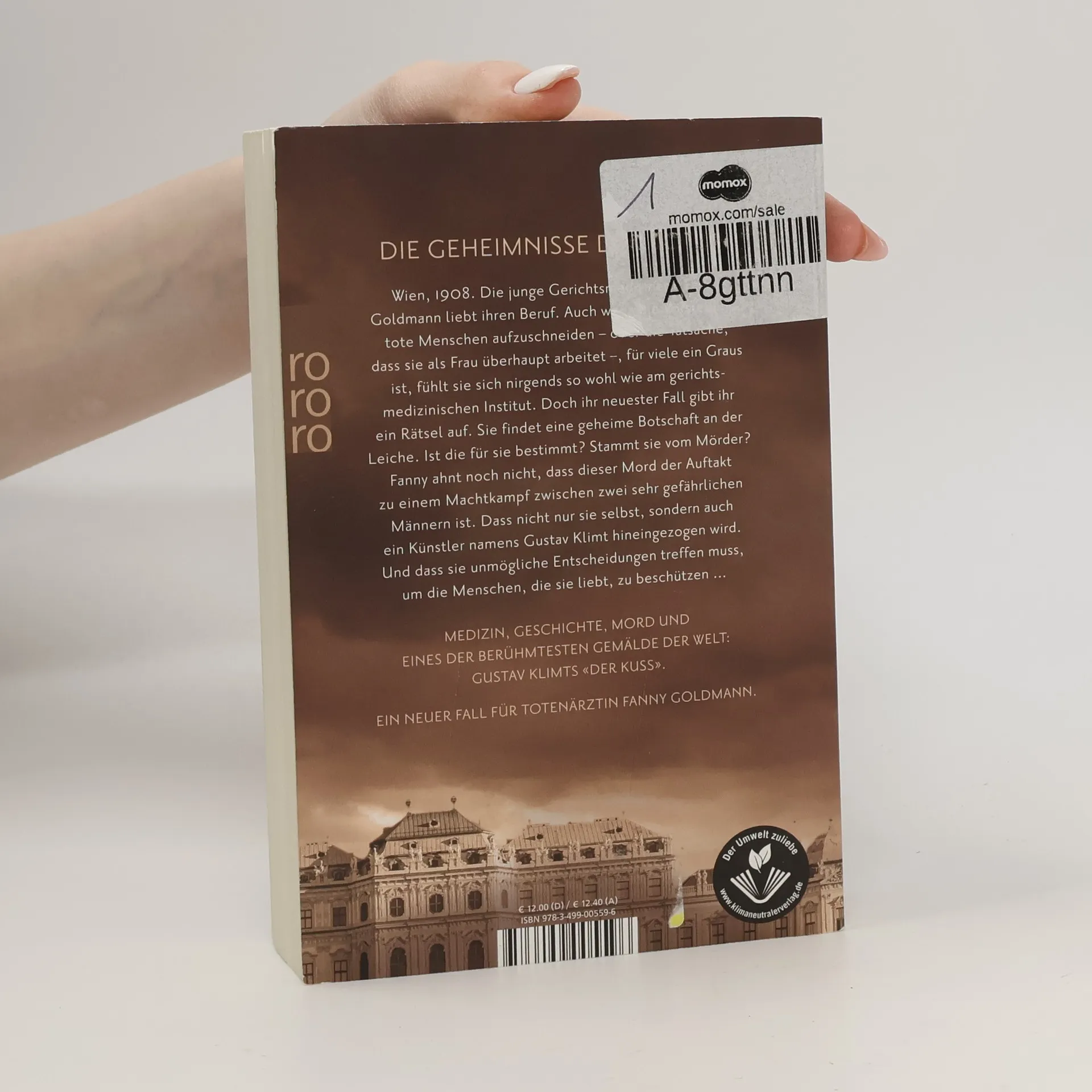 Die Geheimnisse der Toten ... Ein neuer Fall für Totenärztin Fanny Goldmann. Wien, 1908. Die junge Gerichtsmedizinerin Fanny Goldmann liebt ihren Beruf. Auch wenn die Vorstellung, tote Menschen aufzuschneiden – oder die Tatsache, dass sie als Frau überhaupt arbeitet –, für viele ein Graus ist, fühlt sie sich nirgends so wohl wie am gerichtsmedizinischen Institut. Doch ihr neuester Fall gibt ihr ein Rätsel auf. Sie findet eine geheime Botschaft an der Leiche. Ist die für sie bestimmt? Stammt sie vom Mörder? Fanny ahnt noch nicht, dass dieser Mord der Auftakt zu einem Machtkampf zwischen zwei sehr gefährlichen Männern ist. Dass nicht nur sie selbst, sondern auch ein Künstler namens Gustav Klimt hineingezogen wird. Und dass sie unmögliche Entscheidungen treffen muss, um die Menschen, die sie liebt, zu beschützen … Medizin, Geschichte, Mord und eines der berühmtesten Gemälde der Welt: Gustav Klimts «Der Kuss». Hochspannung vor historischer Kulisse.