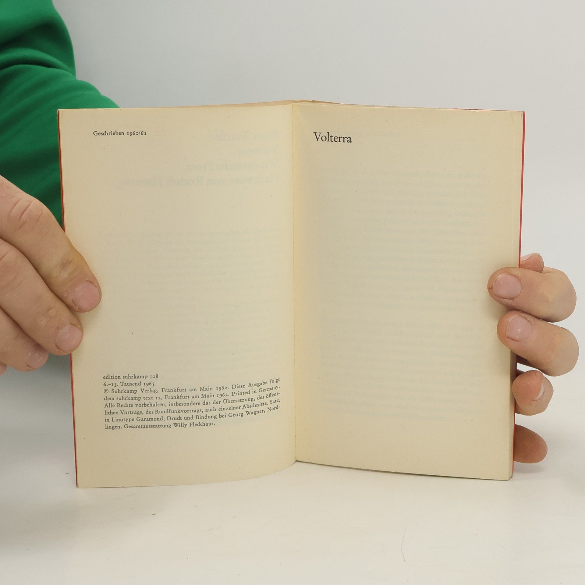 Volterra. Wie entsteht Prosa. Nachwort von Rudolf Hartung