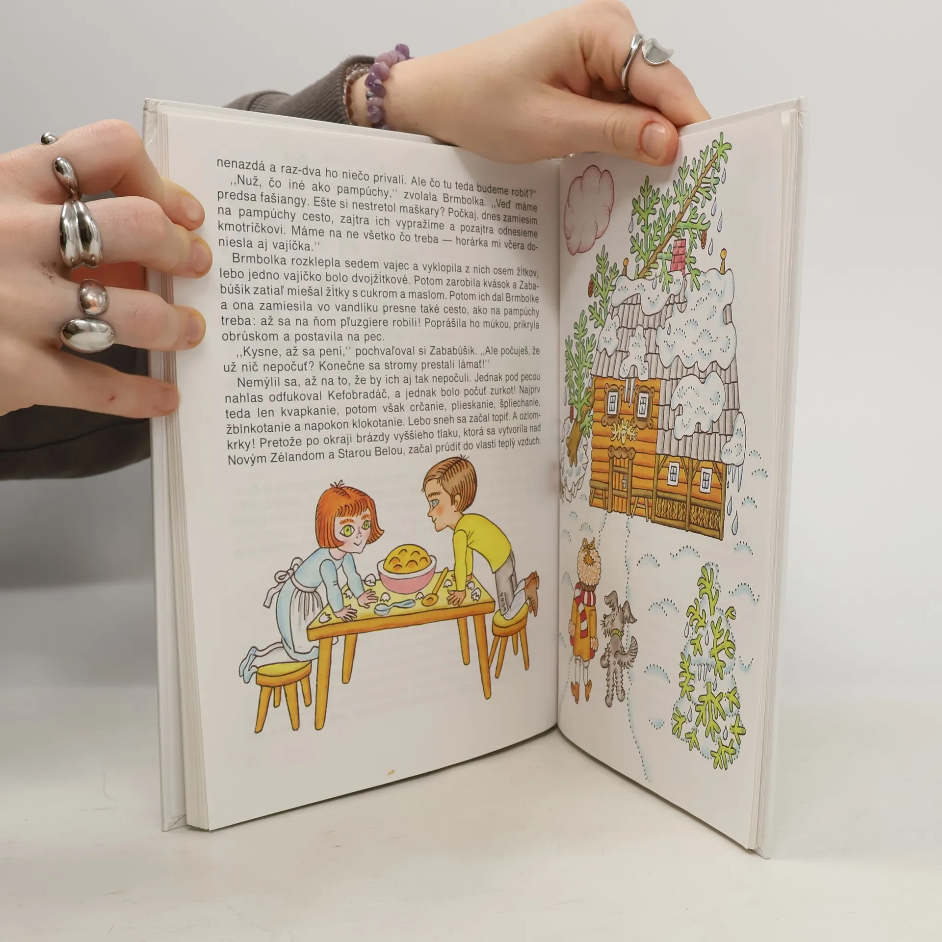 Zimný príbeh o dvoch šikovných deťoch, ktoré si dokážu samé poradiť, keď kmotríček, ktorý se o nich stará, nečakane ochorie, pretože mu došiel cesnak, a musí do nemocnice. Brombolka a Zababúšik občas s problémami, ale vždy vtipne a s množstvom fantázie vyriešia, ako zatepliť pumpu, akozachrániť dusiacich sa kaprov, ako poraziť sušičku, ako zostrojiť drevošmyk, ako rozveseliť kmotríčka mikulášskou nádielkou i ako napiecť cukrovinky...
