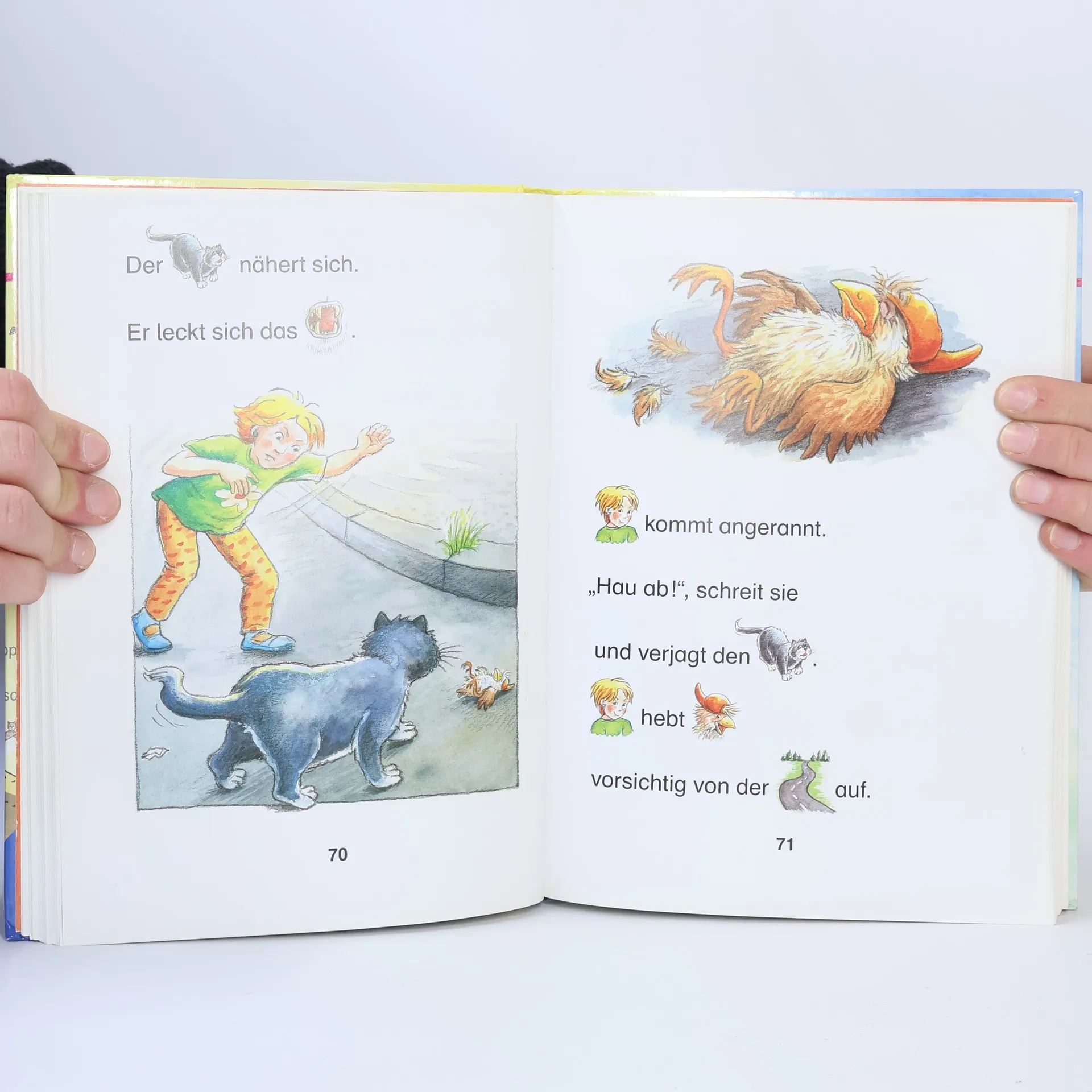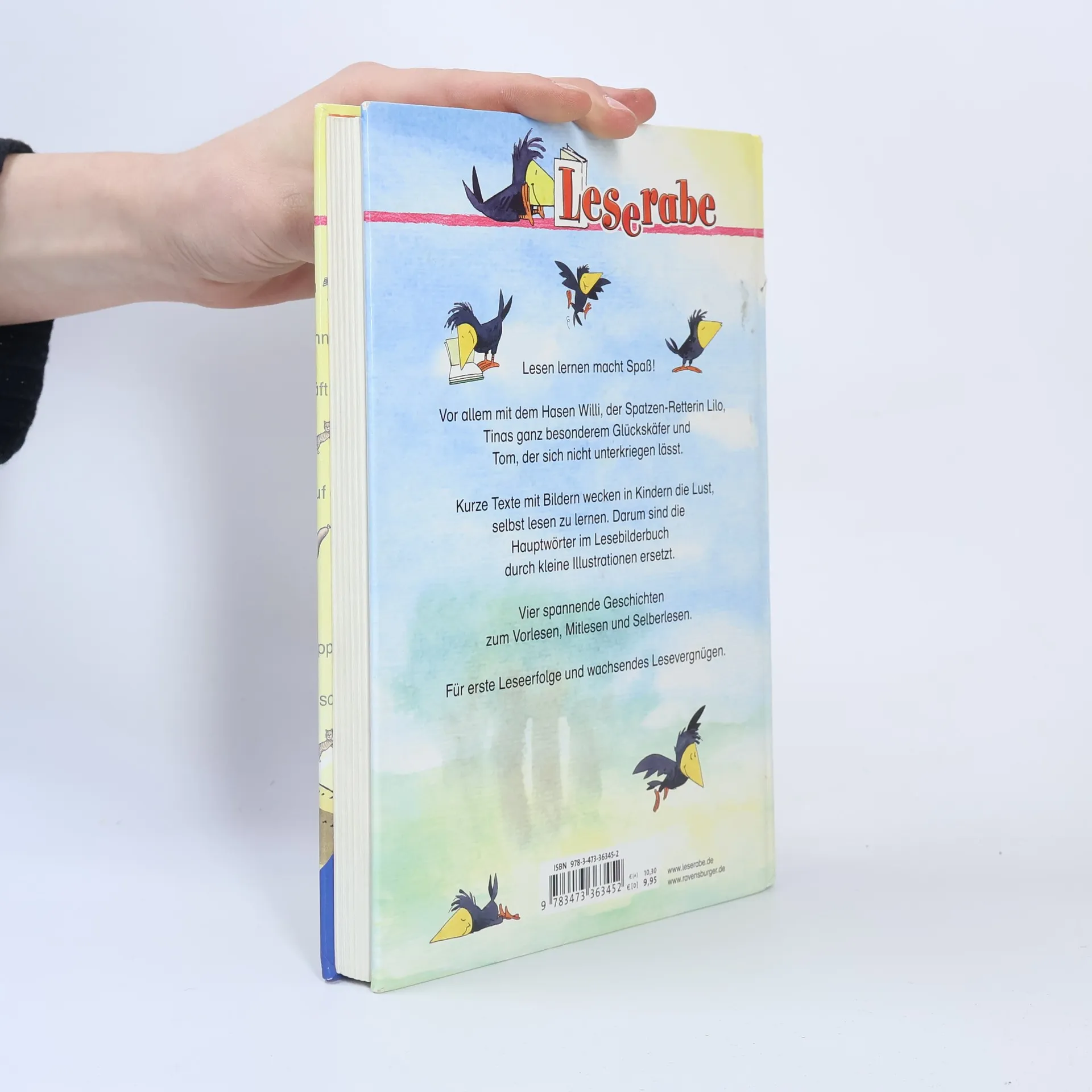 . vor allem mit dem Hasen Willi, der Spatzen-Retterin Lilo, Tinas ganz besonderem Glückskäfer und Tom, der sich nicht unterkriegen lässt. Kurze Texte mit Bildern wecken in Kindern die Lust, selbst lesen zu lernen. Darum sind die Hauptwörter im Lesebilderbuch durch kleine Illustrationen ersetzt. Vier spannende Geschichten für erste Leseerfolge und wachsendes Lesevergnügen!