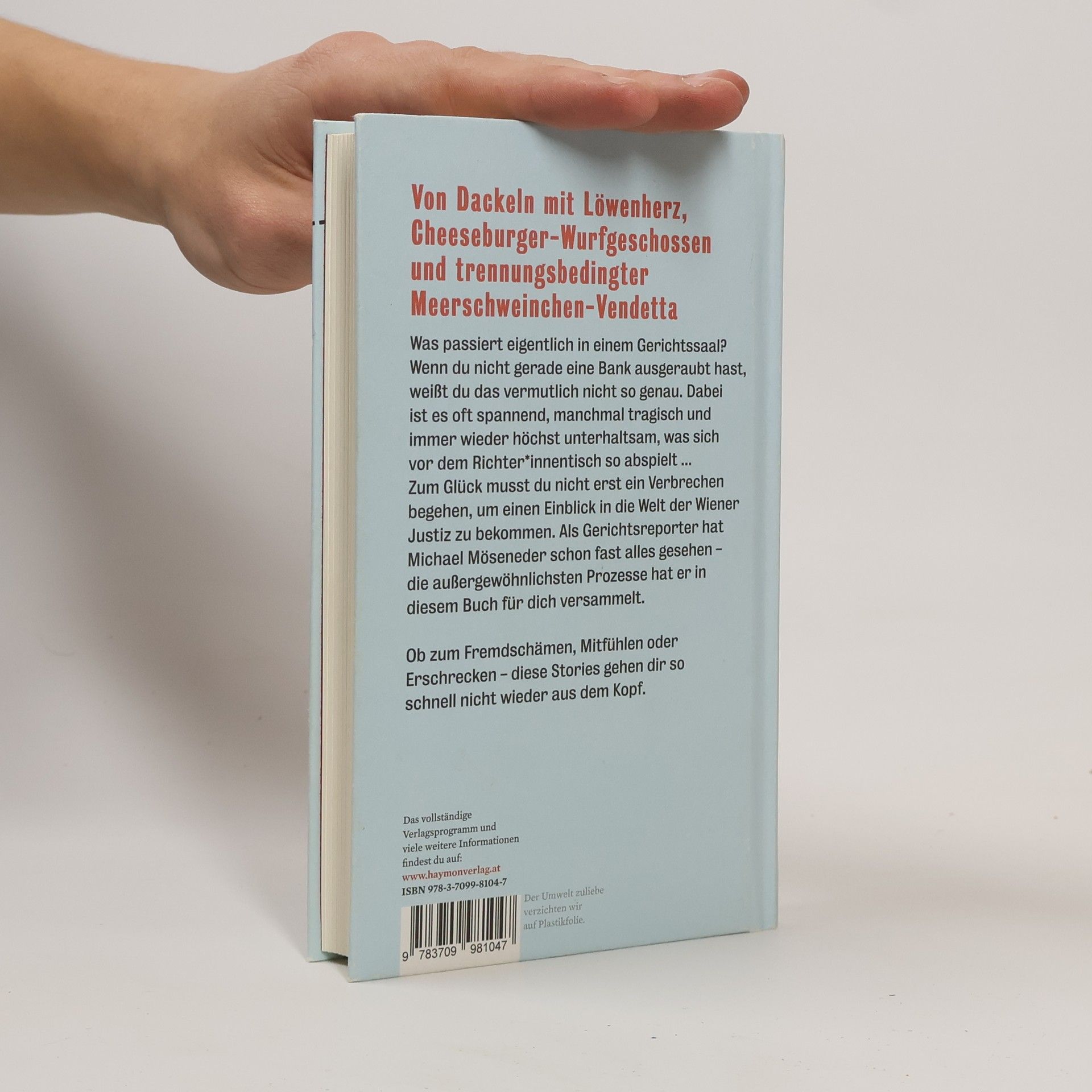 Was passiert eigentlich in einem Gerichtssaal? Wenn du nicht gerade eine Bank ausgeraubt hast, weißt du das vermutlich nicht genau, es sei denn, du bist leidenschaftlicher Gerichtskolumnen-Fan. Oft ist es spannend, manchmal tragisch und immer unterhaltsam, was sich vor dem Richter*innentisch abspielt. Manche Prozesse sind so absurd wie das Leben selbst: Der Fall der untalentierten Betrüger-Omi oder der Mann, der eine Straßenbahn stahl, sind nur einige Beispiele. Auf der Anklagebank sitzen auch rabiate Wildpinkler, aggressive Parklücken-Diebe und trennungsbedingte Meerschweinchen-Vendetta. Neben diesen amüsanten Geschichten gibt es auch Straftaten, die schockieren und wütend machen: Habgier und Eifersucht als Tatmotive, wenig Einsicht der Täter*innen. Diese Geschichten bleiben im Gedächtnis. Zum Glück musst du kein Verbrechen begehen, um einen Einblick in die Welt der Wiener Justiz zu erhalten. Stattdessen begleitet dich Michael Möseneder, ein Gerichtsreporter mit einem untrüglichen Gespür für spannende Prozesse. In diesem Buch versammelt er die außergewöhnlichsten Fälle. Egal, ob du zum Verurteilen, Fremdschämen oder Mitfühlen neigst, hier wirst du schmunzeln, grübeln, empört den Kopf schütteln und dich verstört fragen: „Ist das wirklich passiert?!“