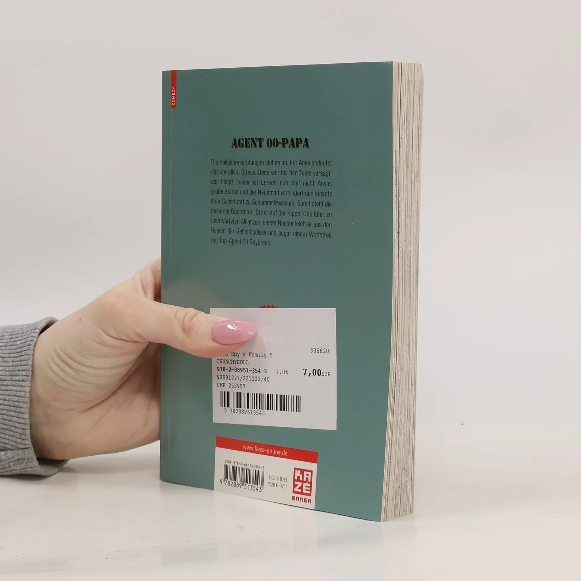 Die Halbjahresprüfungen stehen an. Für Anya bedeutet das vor allem Stress. Denn wer bei den Tests versagt, der fliegt! Leider ist Lernen nun mal nicht Anyas große Stärke und der Neumond verhindert den Einsatz ihrer Superkraft zu Schummelzwecken. Somit steht die gesamte Operation „Strix“ auf der Kippe. Das führt zu unerwarteten Allianzen, einem Nachhilfelehrer aus den Reihen der Geheimpolizei, und sogar einem Wettstreit mit Top-Agent (?) Daybreak.