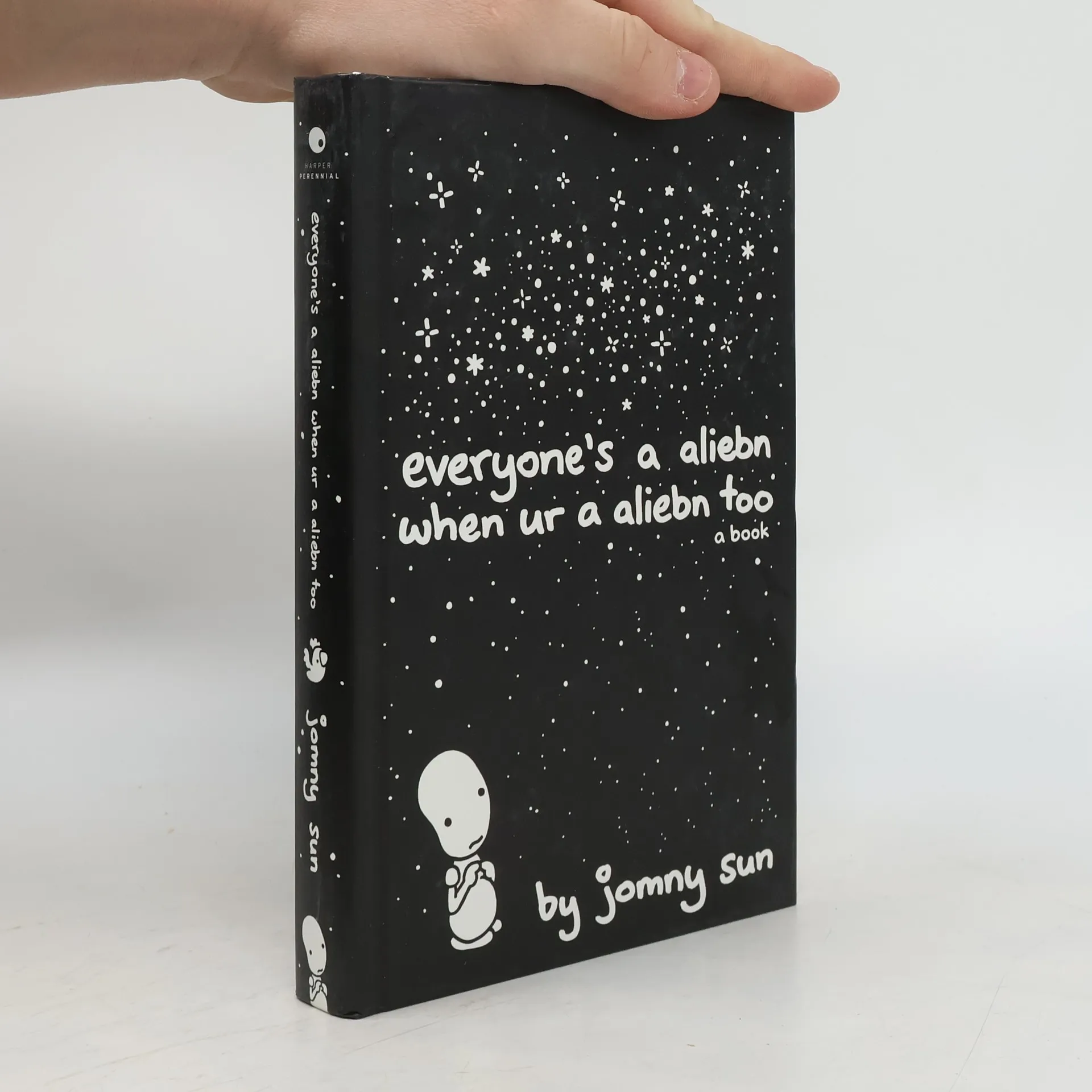 everyone’s a aliebn when ur a aliebn too is the illustrated story of a lonely alien sent to observe Earth, only to meet all sorts of creatures with all sorts of perspectives on life, love, and happiness, all while learning to feel a little better about being an alien—based on the enormously popular Twitter account, @jonnysun. Here is the unforgettable story of Jomny, a lonely alien who, for the first time ever, finds a home on our planet after learning that earthlings can feel lonely too. Jomny finds friendship in a bear tired of other creatures running away in fear, an egg struggling to decide what to hatch into, an owl working its way to being wise, a tree feeling stuck in one place, a tadpole coming to terms with turning into a frog, a dying ghost, a puppy unable to express itself, and many more. Through this story of a lost, lonely and confused alien finding friendship, acceptance, and love among the creatures of Earth, we will all learn how to be a little more human. And for all of us earth-bound creatures here on this planet, we can all be reminded that sometimes, it takes an outsider to help us see ourselves for who we truly are.