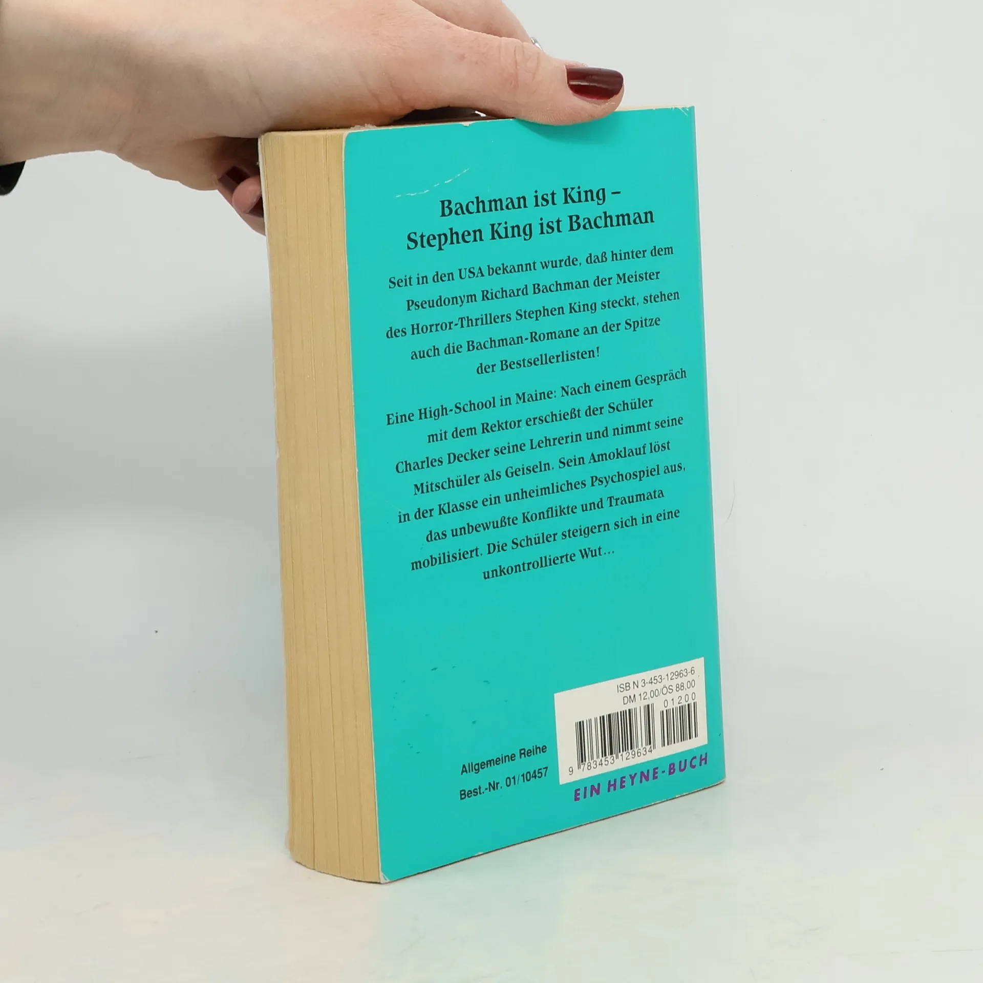 Eine High School in Maine: Nach einem Gespräch mit dem Rektor erschießt der Schüler Charles Decker seine Lehrerin und nimmt seine Mitschüler als Geiseln. Sein Amoklauf löst in der Klasse ein unheimliches Psychospiel aus, das unbewußte Konflikte und Traumata mobilisiert. Die Schüler steigern sich in eine unkontrollierte Wut...