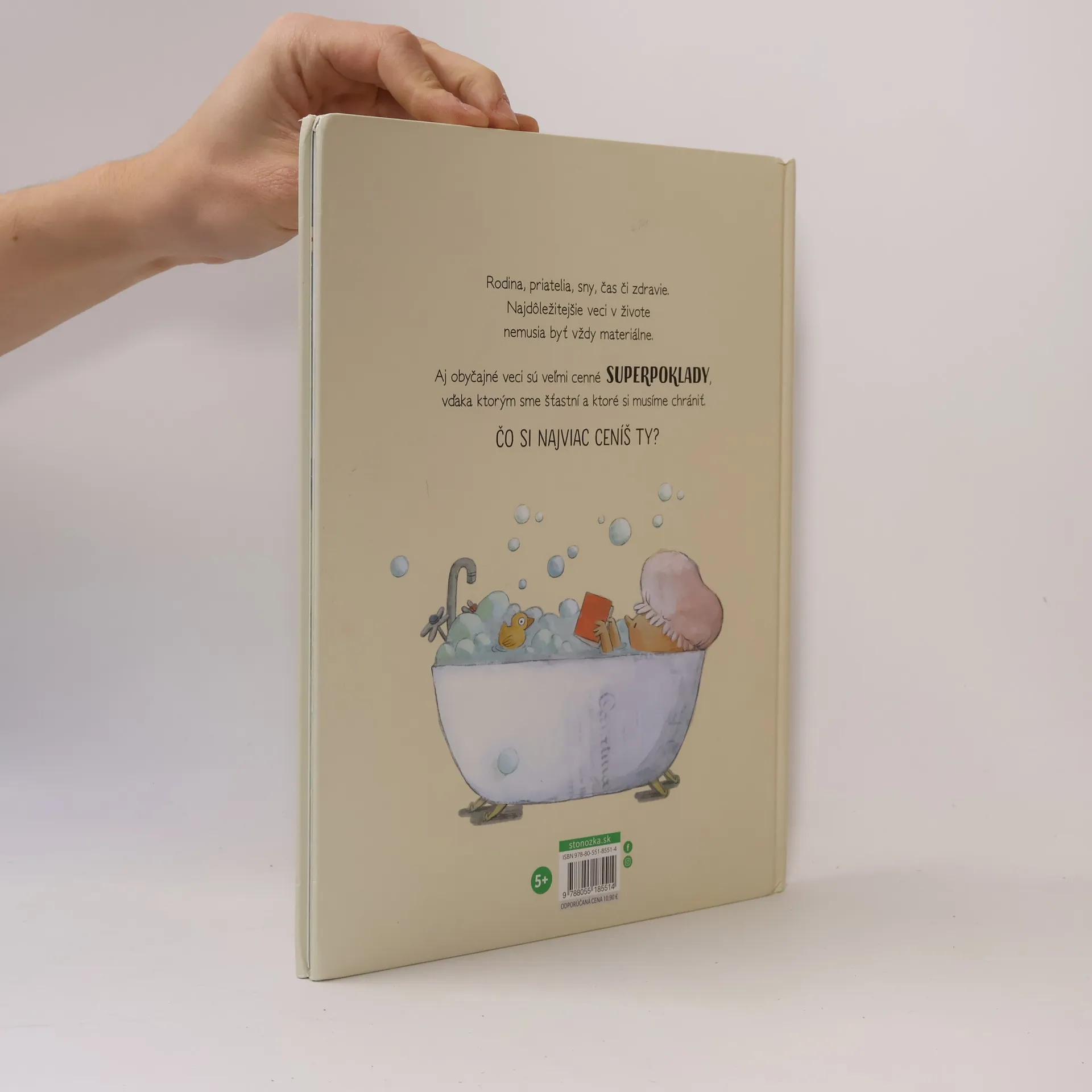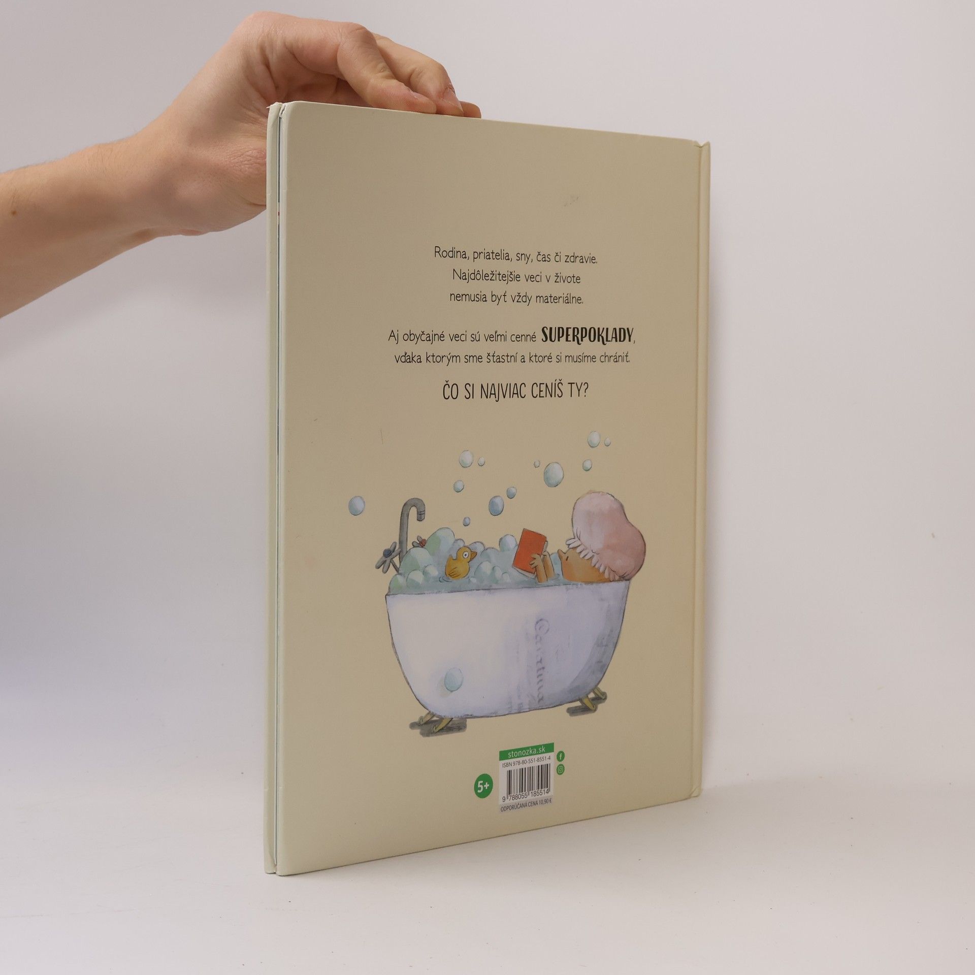 Albert má rád ľudí a ich úsmevy, bozky aj objatia. Lásku nielen prijíma, ale aj rozdáva. Oliver sa venuje množstvu aktivít, nemá ani čas nudiť sa. Martina najradšej zo všetkého skúma a spoznáva nové veci... Láska, čas, vedomosti, rodina či zdravie – najdôležitejšie veci v živote nemusia byť vždy materiálne.Po Veľkej knihe superschopností prichádzajú autorka Susanna Issern a ilustrátorka Rocio Bonilla s ďalšou krásnou knižkou plnou nenápadných ponaučení. Už po pár stránkach si uvedomíte, že svoje superpoklady, hoci aj tie najobyčajnejšie, si musíte chrániť!
