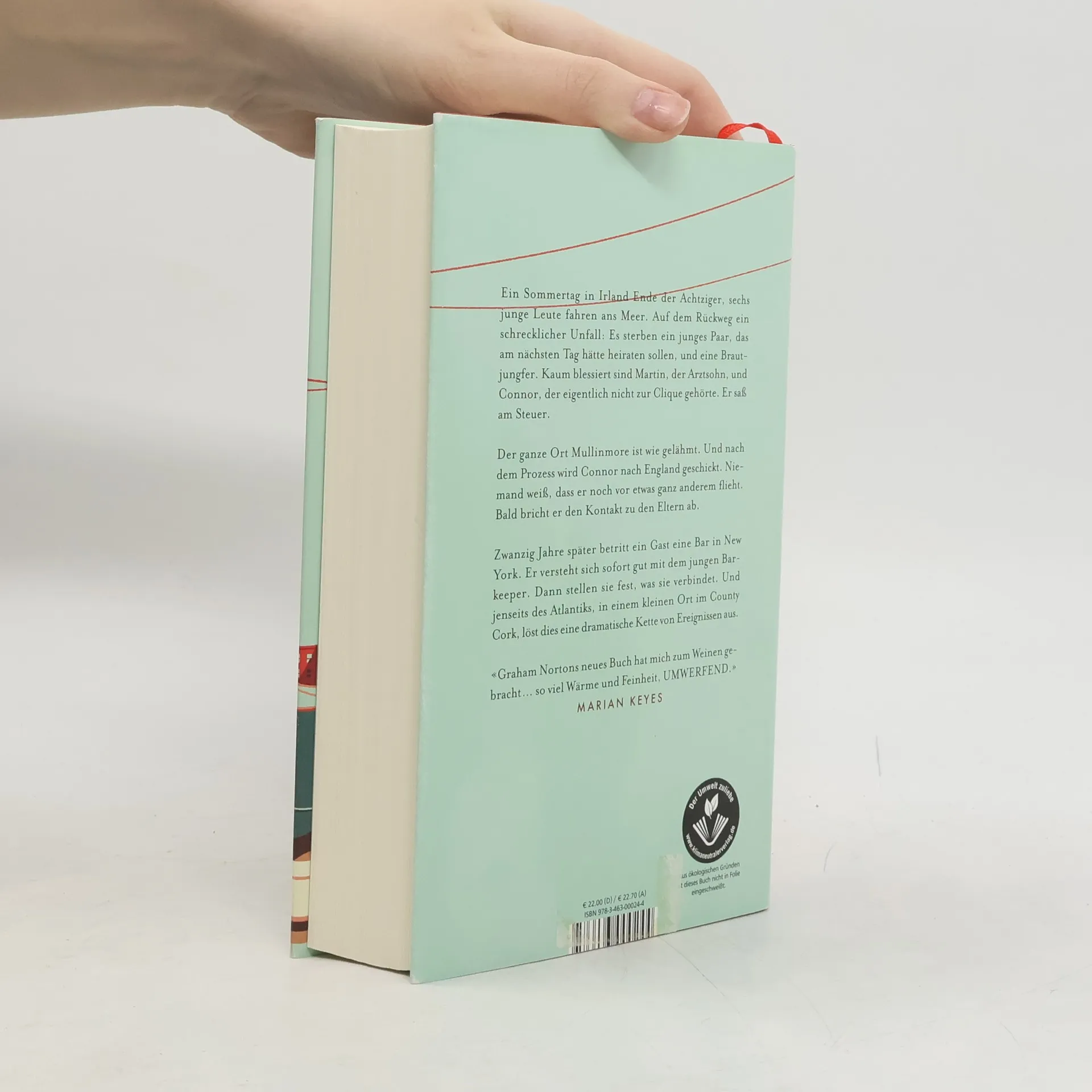 Ein Sommertag Ende der Achtziger, sechs junge Leute fahren ans Meer. Auf dem Rückweg ein schrecklicher Unfall: Es sterben ein junges Paar, das am nächsten Tag hätte heiraten sollen, und eine Brautjungfer; die andere überlebt schwer verletzt. Kaum blessiert sind Martin, der Arztsohn, und Connor, der eigentlich nicht zur Clique gehörte. Er saß am Steuer. Der ganze Ort Mullinmore ist wie gelähmt. Und nach dem Prozess wird Connor nach England geschickt. Niemand weiß, dass er noch vor etwas ganz anderem flieht. Bald bricht er den Kontakt zu den Eltern ab. Connors Schwester wird derweil von Martin umworben. Die beiden heiraten, und die Ehe wird für Ellen ein Unglück. Zwanzig Jahre später betritt ein Gast eine Bar in New York. Er versteht sich sofort gut mit dem jungen Barkeeper. Dann stellen sie fest, was sie verbindet. Und jenseits des Atlantiks, in einem kleinen Ort im County Cork, löst dies eine dramatische Kette von Ereignissen aus.