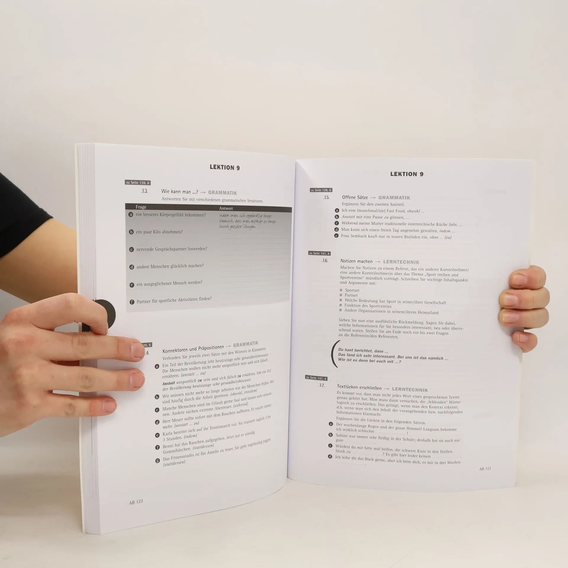 Lehrwerk Deutsch als Fremdsprache, Niveaustufe B2. Enthält Übungen zum Lesen, Hören, Schreiben und Sprechen, sowie zu Wortschatz und Grammatik.
